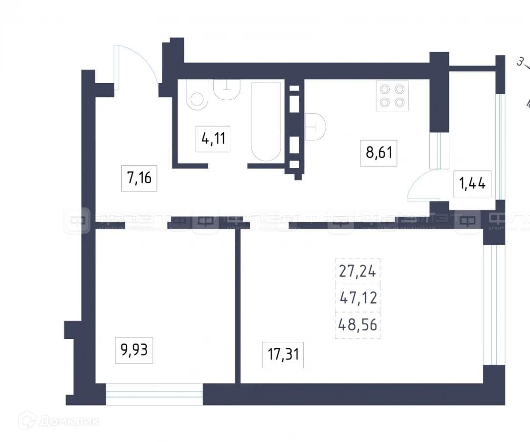 Жилая площадь 27.2 м2