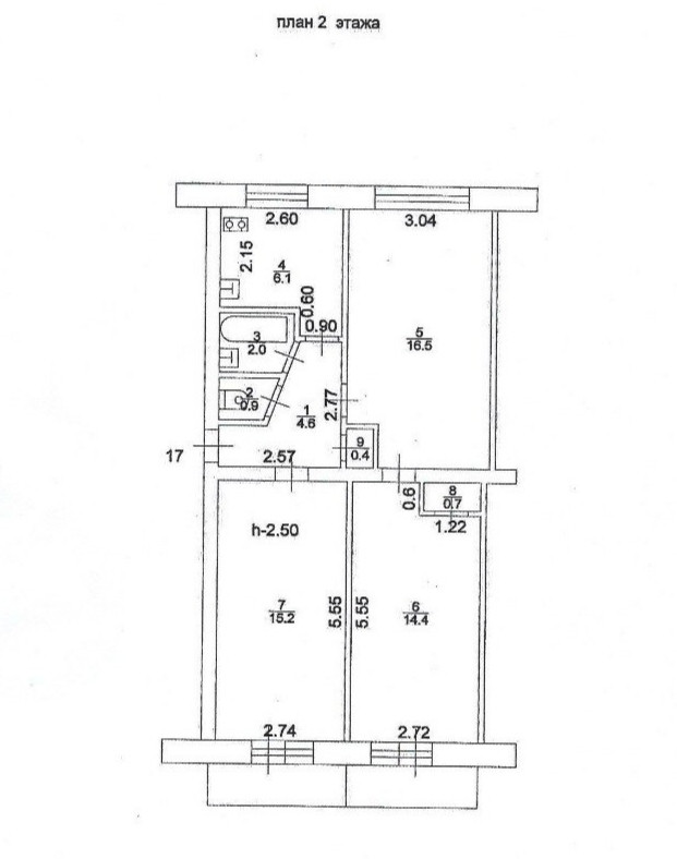 Просторная светлая трёхкомнатная квартира площадью 61м2 в кирпичном доме на втором этаже.