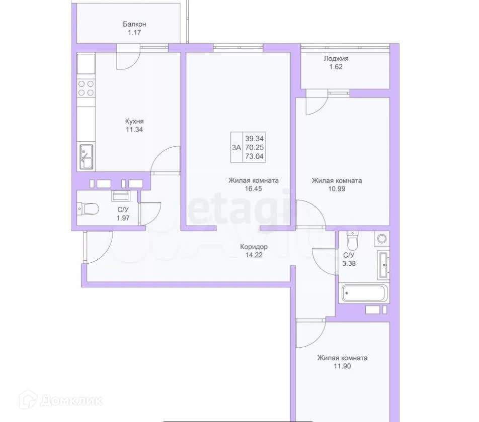 Общая площадь 70.7 м2