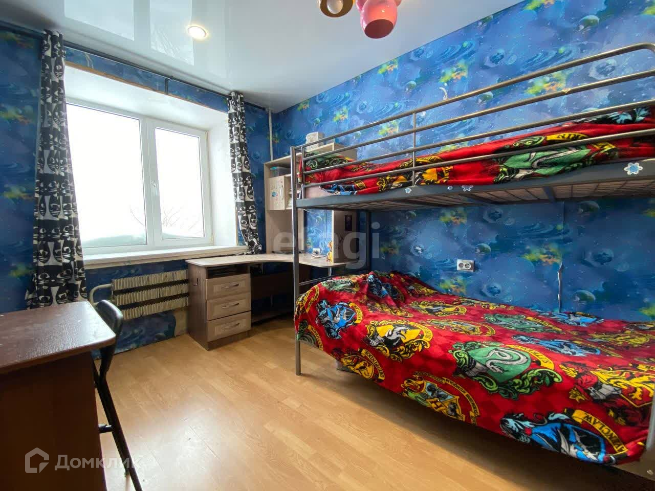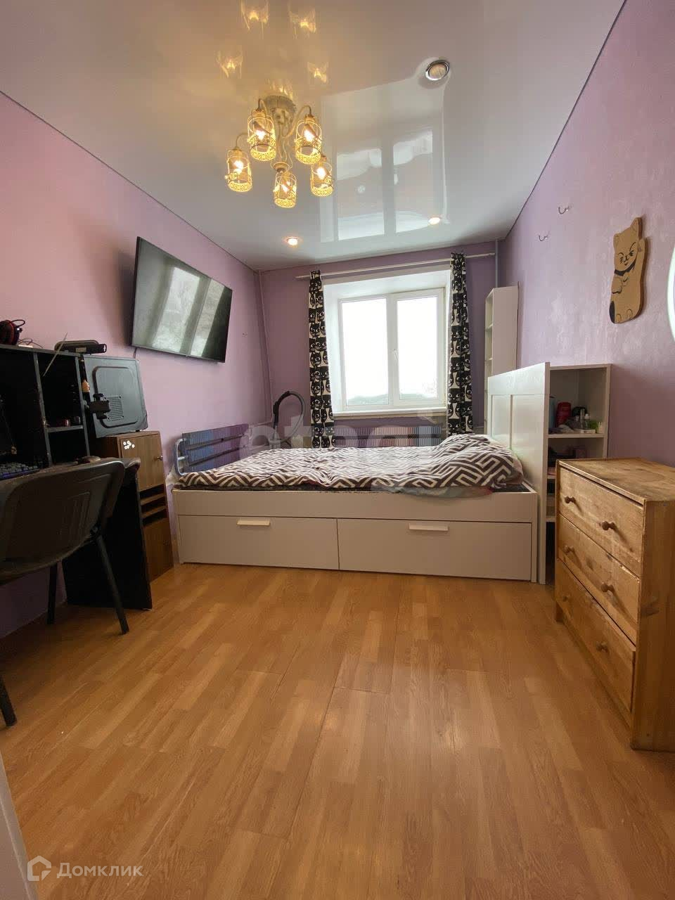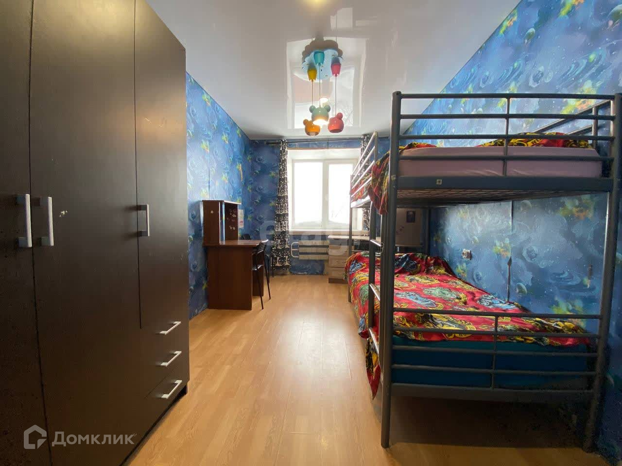 Три комнаты одна из которых функционально это прихожая и кухня-гостиная. Две изолированных спальни. Квартира чистая, ремонт косметический. Все окна заменены на современные стеклопакеты, потолки натяжные глянцевые, на полу ламинат.