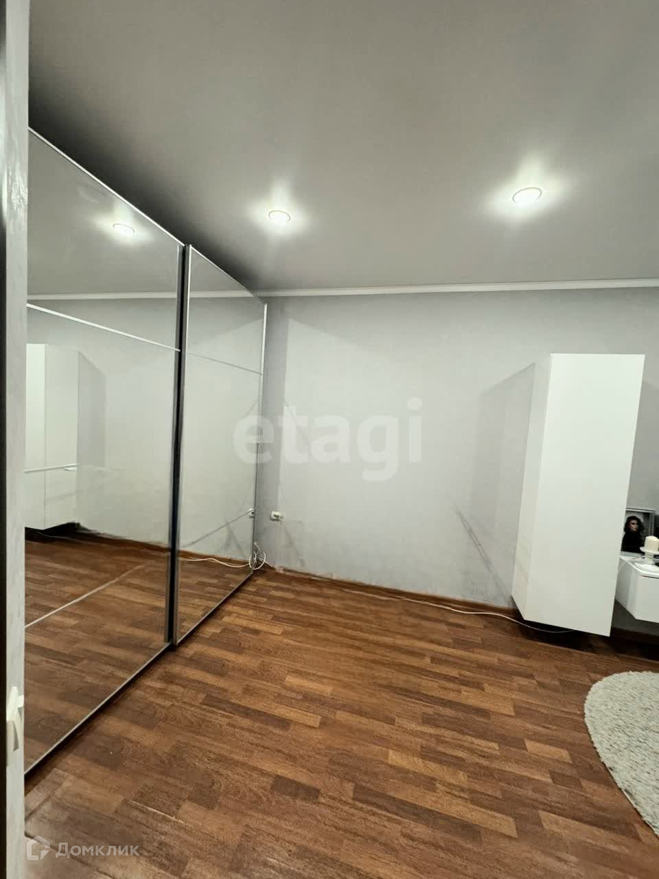 Просторная комната, площадью 19 кв.м- удобно для зонирования. В комнате расположен вместительный встраиваемый шкаф-купе. Шкаф-купе зеркальный, что создает дополнительное ощущение простора в комнате. В комнате установлен кондиционер.