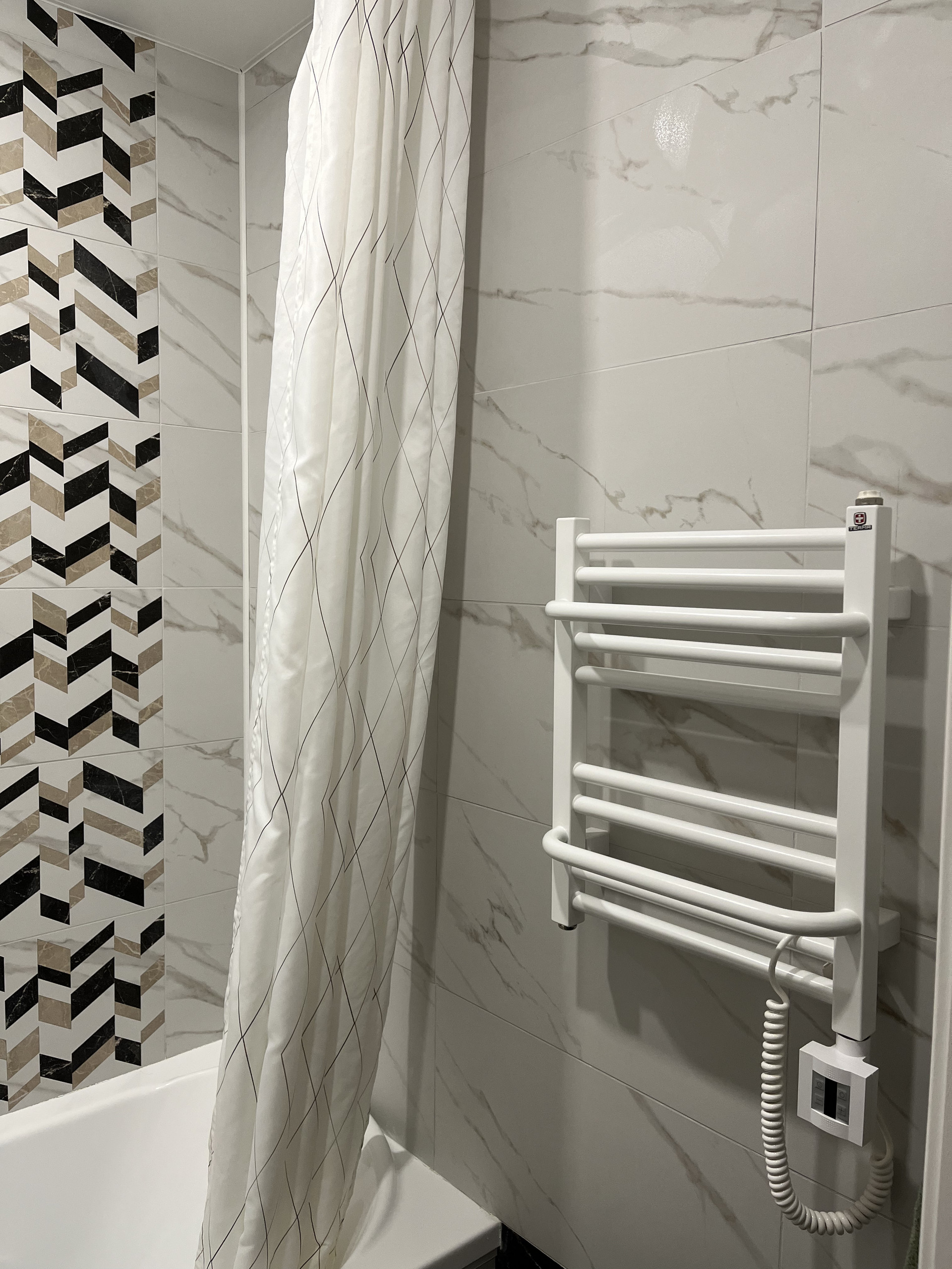 В ванной и коридоре теплый пол Devi.