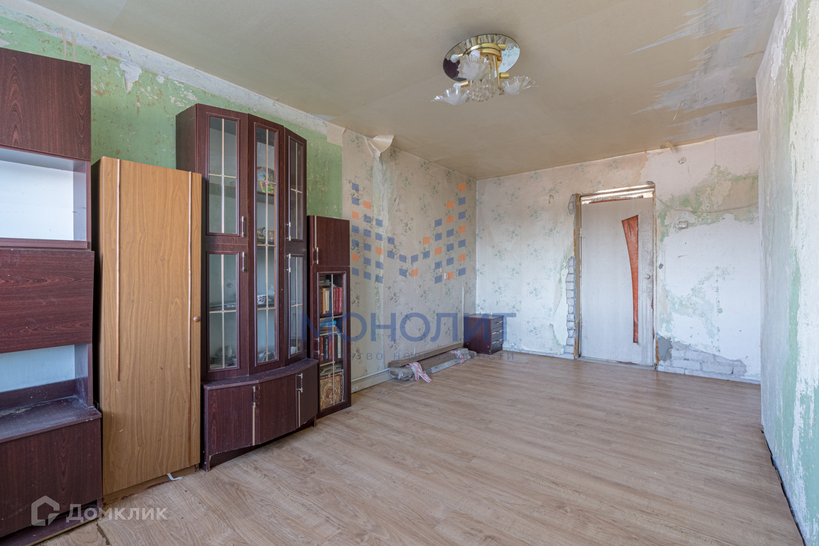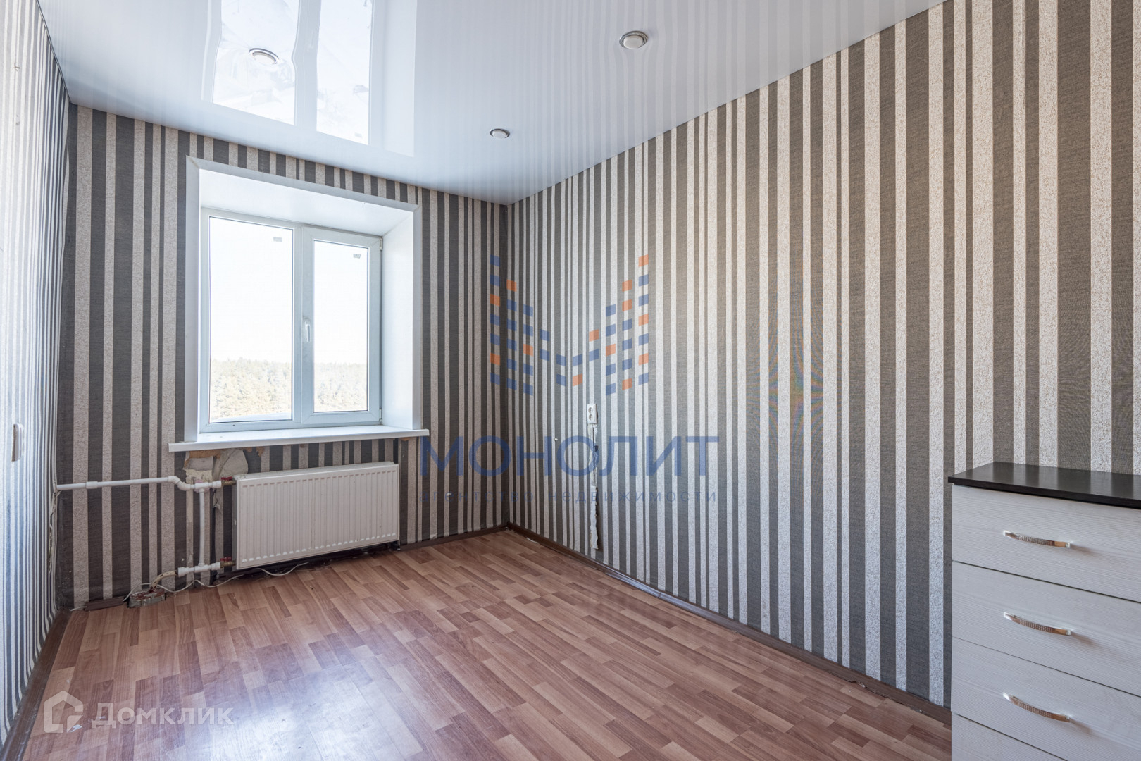 натяжные потолки,  на полах постелен ламинат, установлены новые двери в санузлы. Стоят пластиковые окна в зале, на кухне и комнате.