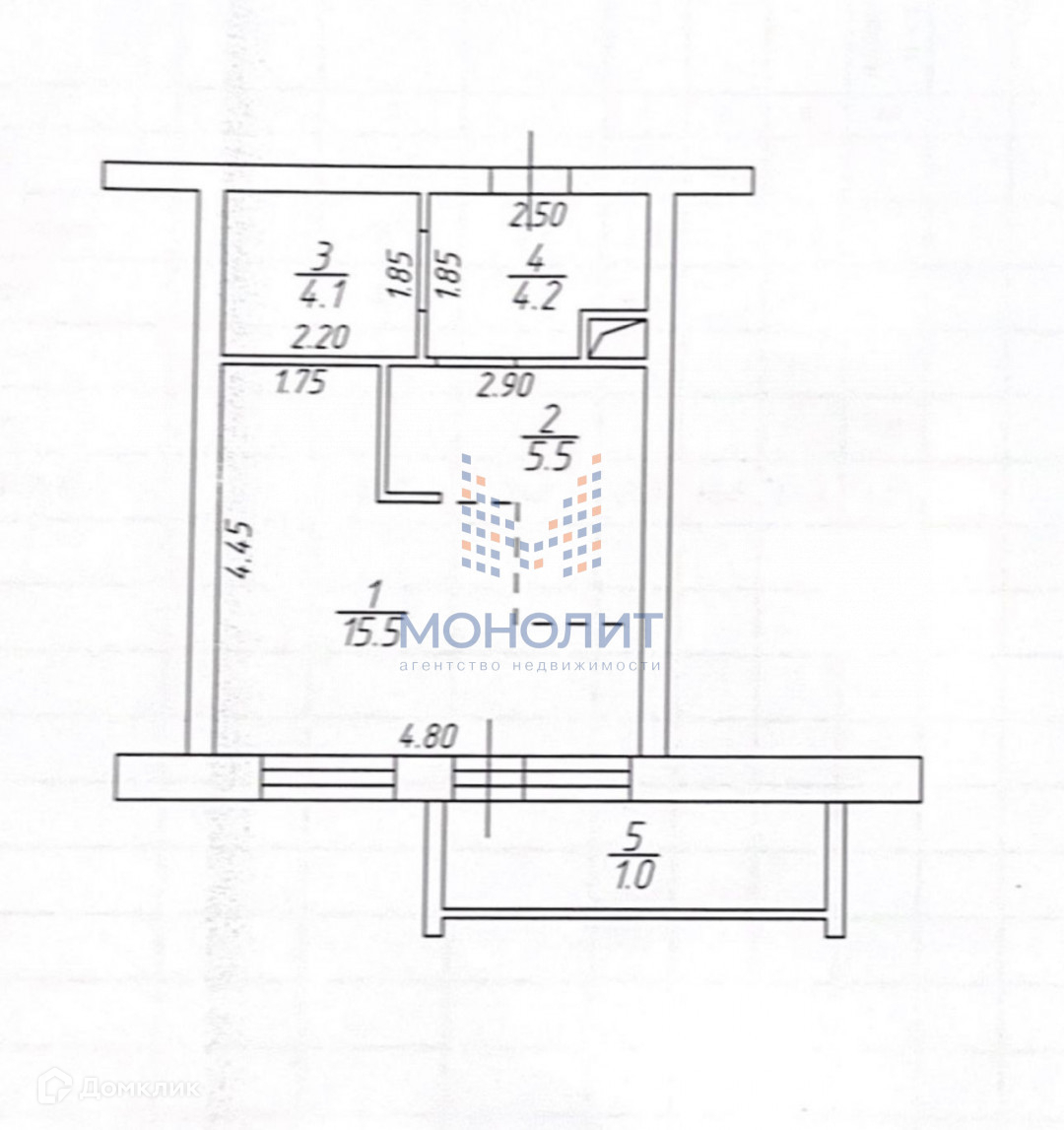 Балкон, лоджия 1 балкон