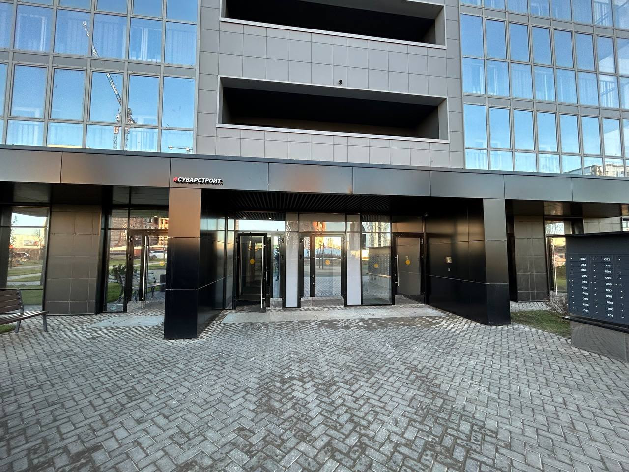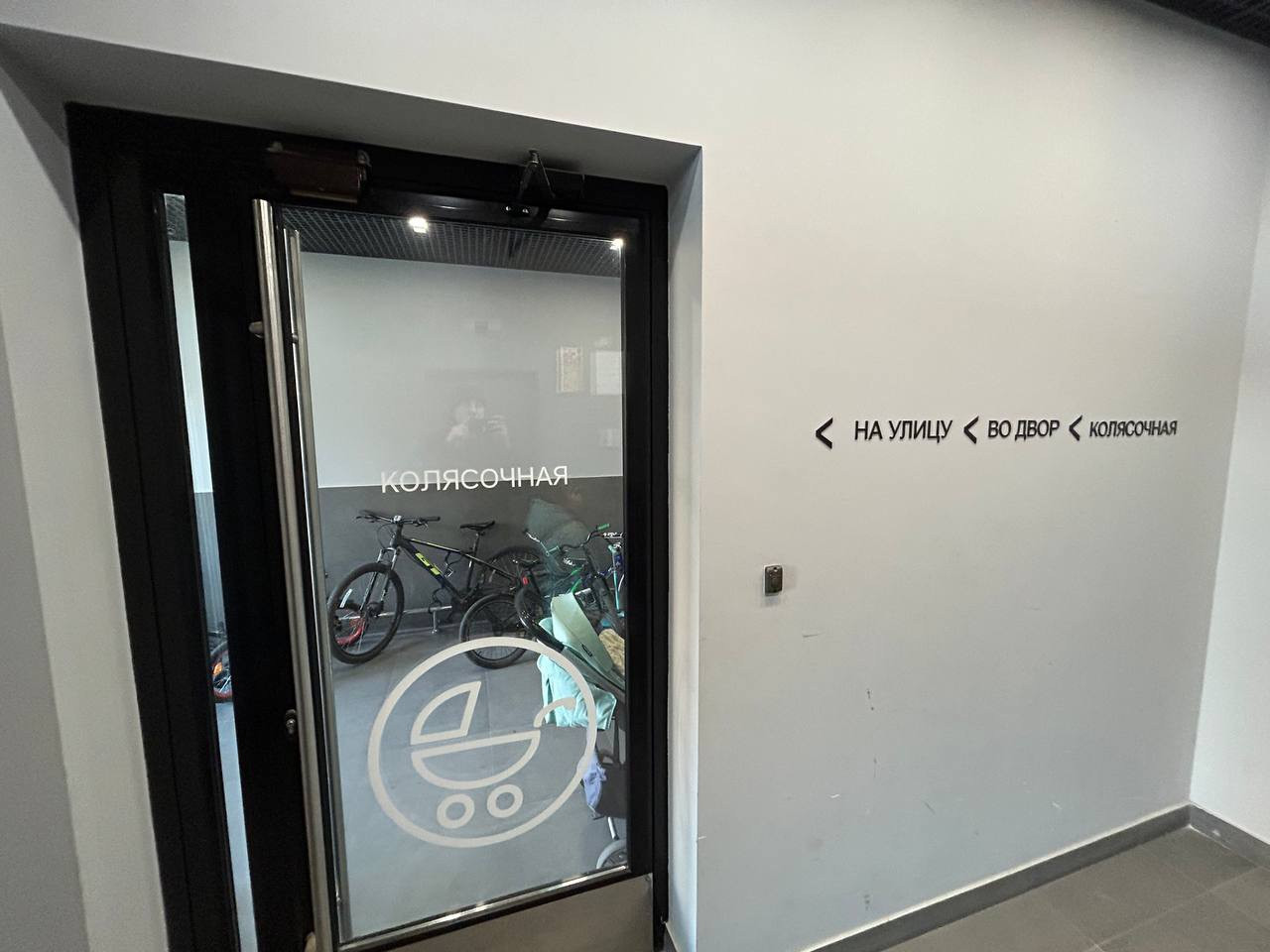 В доме: колясочная, видеонаблюдение, стеклянные входные группы.