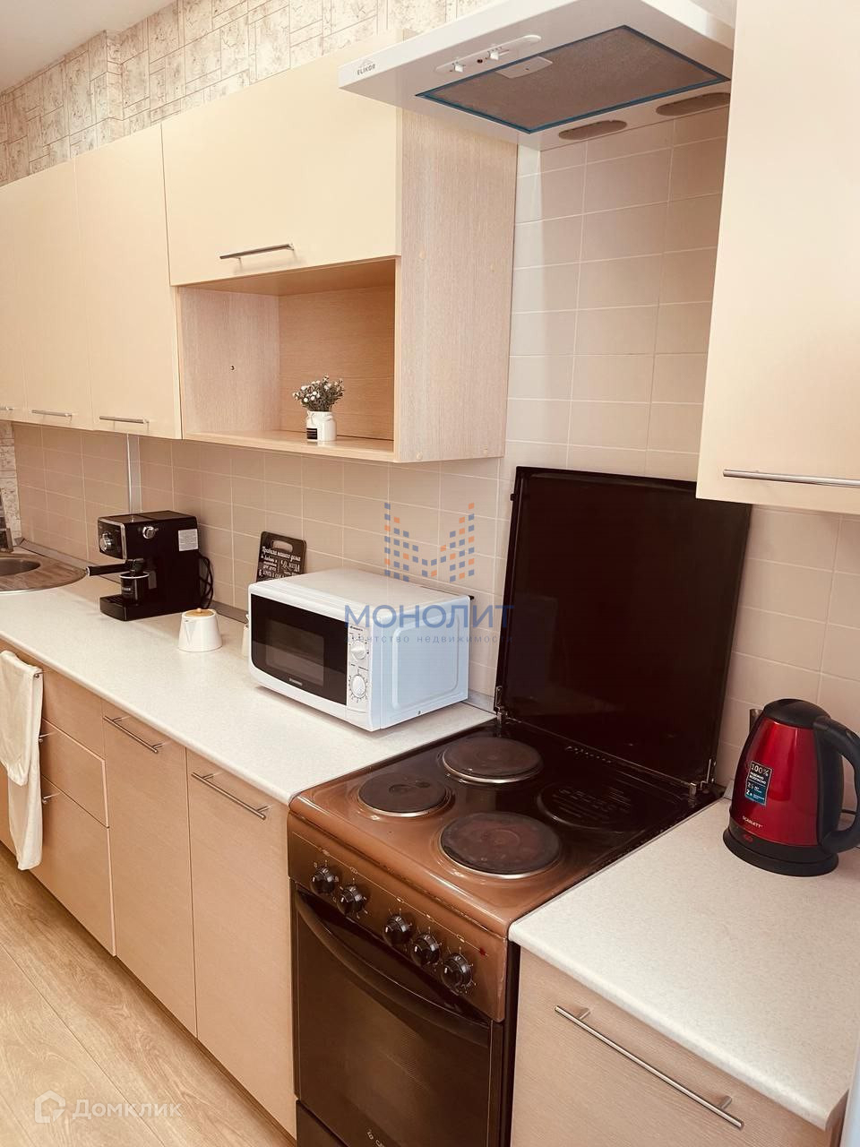 Просторная кухня, много места для комфортного приготовления пищи.