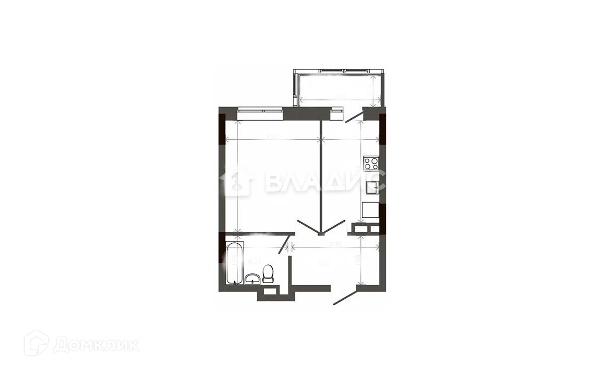 Общая площадь 35.5 м2