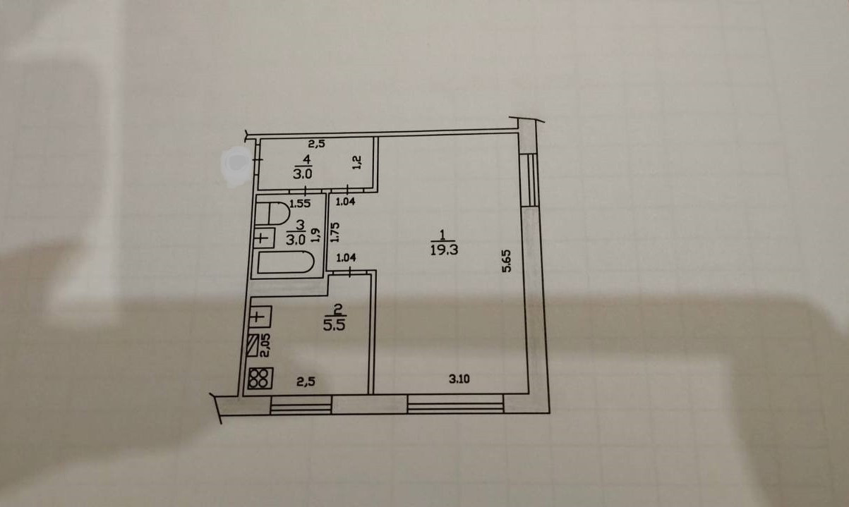 Жилая площадь 19.3 м2