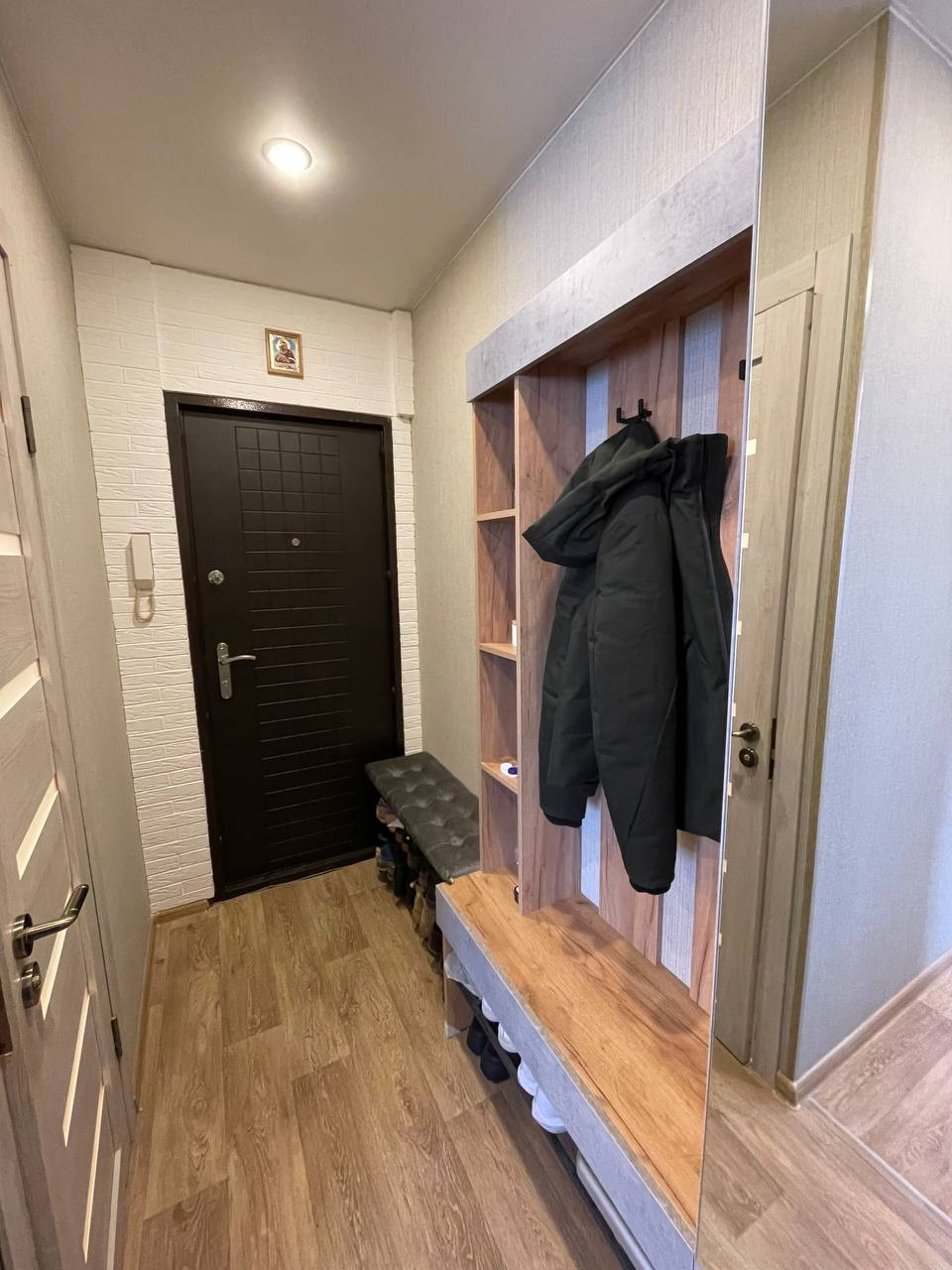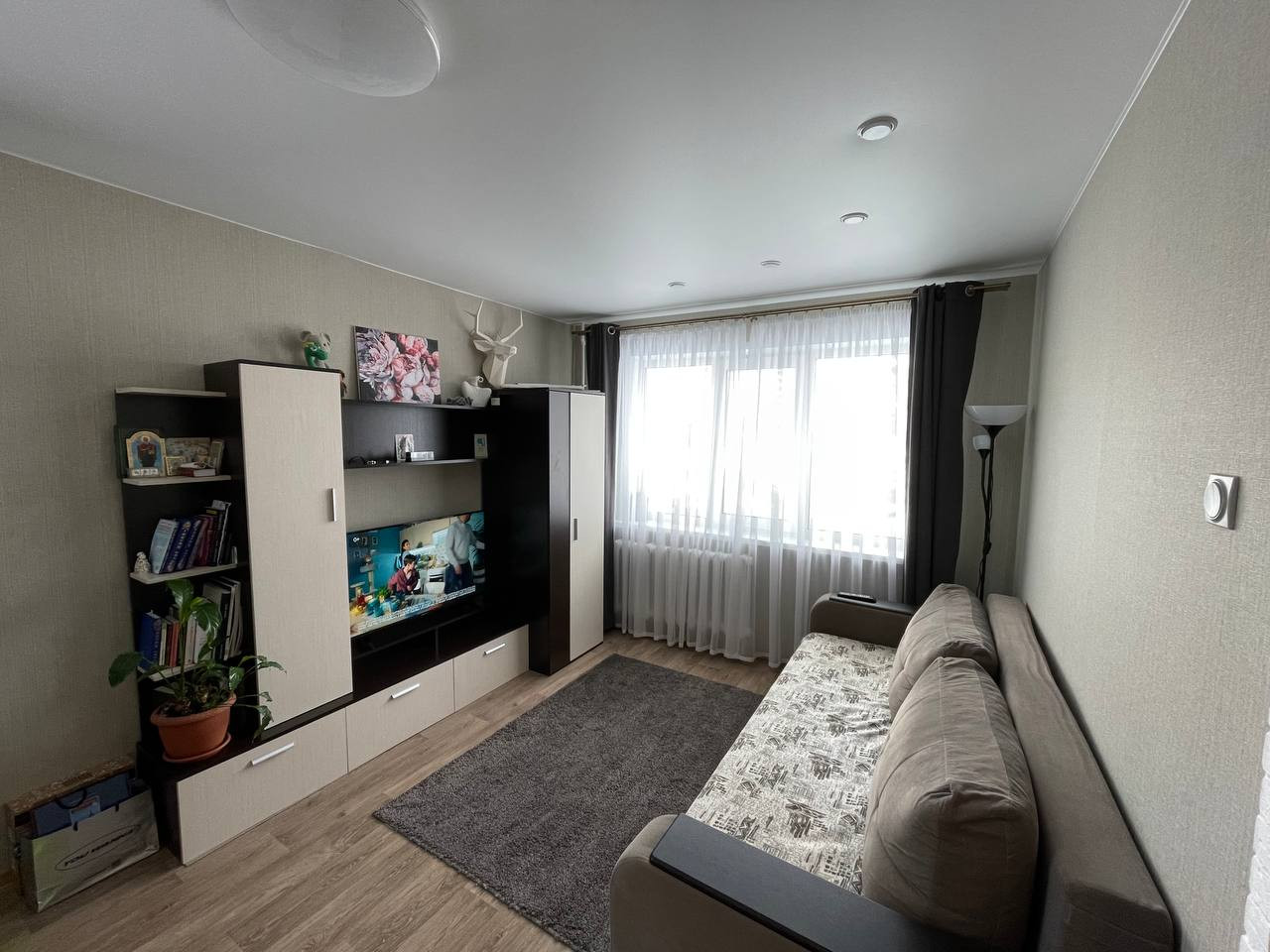 Продается 1-комнатная квартира с хорошим ремонтом. Окна стеклопакет, натяжной потолок, точечные светильники, утепленный пол. В квартире остается вся мебель (прихожая, шкаф купе, стенка, диван, кухонный гарнитур) и техника (стиральная машина, холодильник, духовой шкаф, электрический полотенцесушитель).