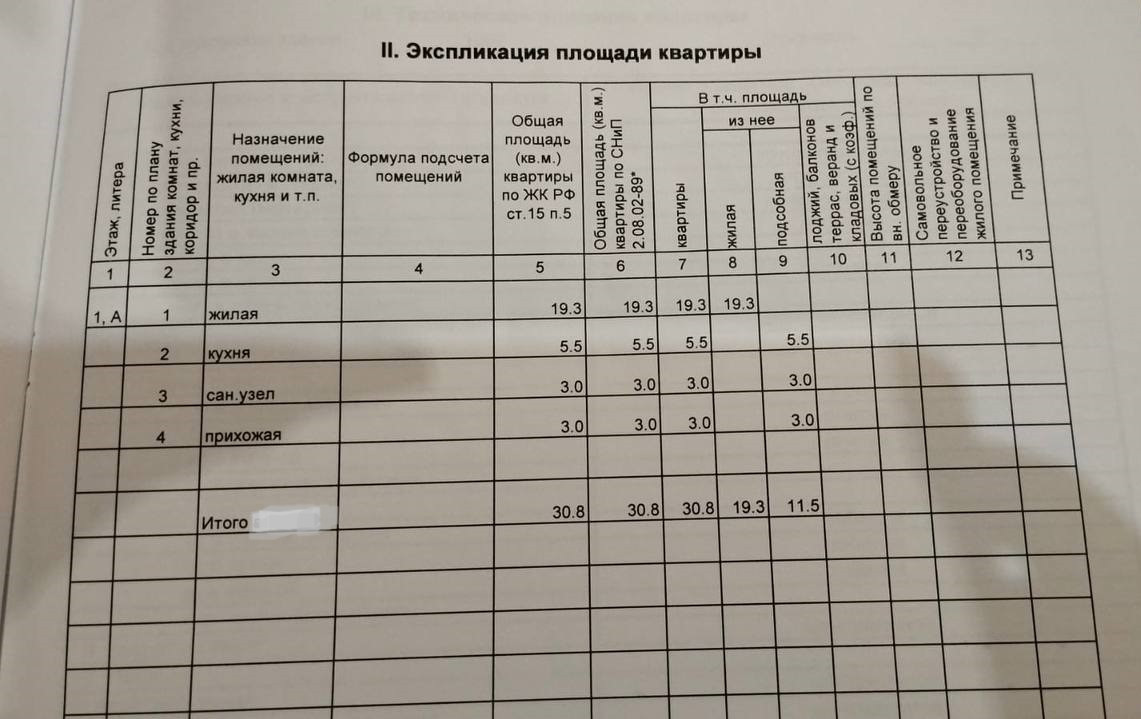 Общая площадь 30.8 м2