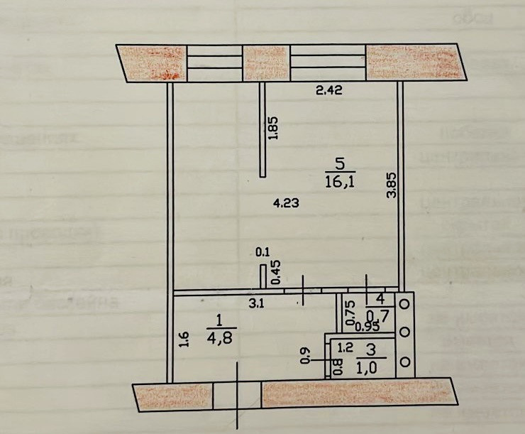 Общая площадь 22.6 м2