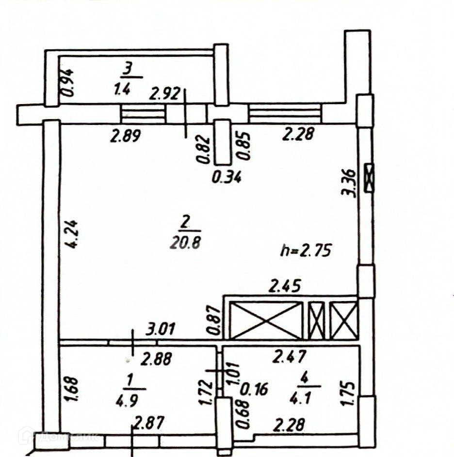 Высота потолков 2.8 м