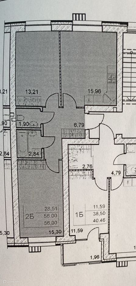 Площадь кухни-гостиной – 16 кв.м., комнаты – 15,3 кв.м. и 13,2 кв.м., санузел раздельный. Учитывая площадь кухни, фактически "евротрешка".