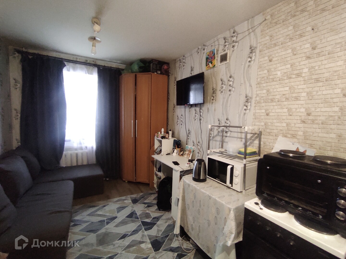 Квартира-студия светлая, с косметическим ремонтом, окна выходят во двор, не угловая.