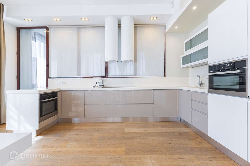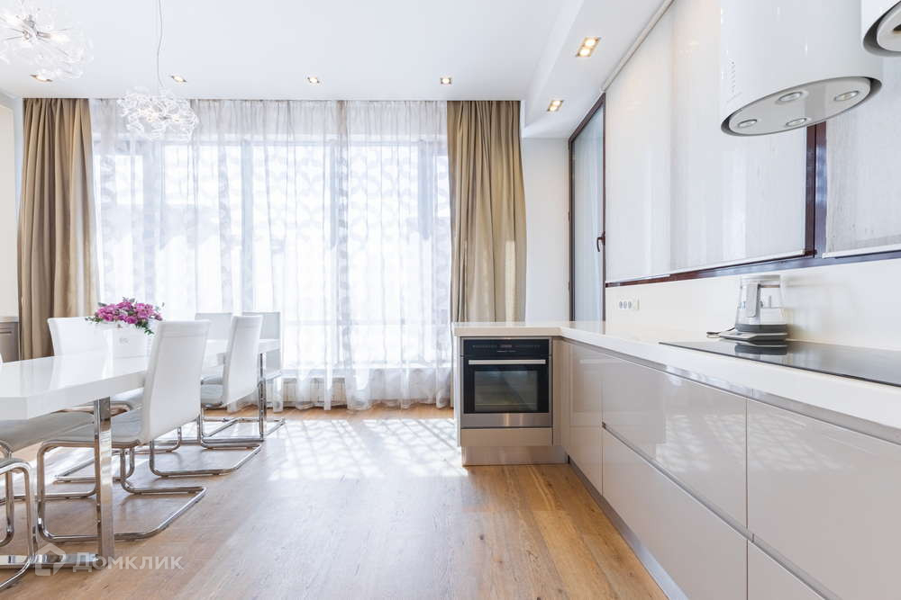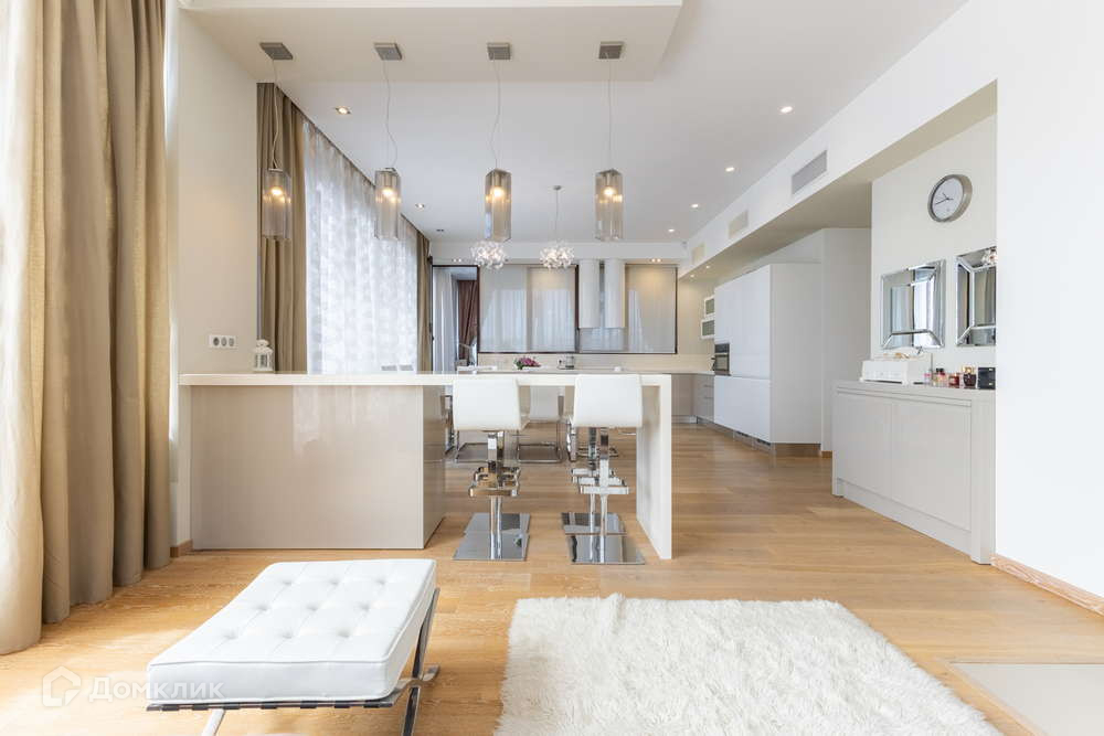 - комфортная кухонная зона 26 кв.м. с большим обеденным столом и барной стойкой из акрилового камня и бытовой техникой премиум-класса