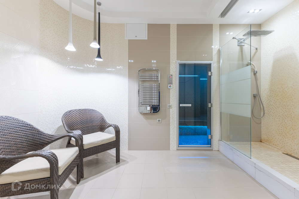 - 3 отлично оборудованные ванные комнаты , 1 из которых гостевой санузел -3,2 кв.м., хозяйский санузел-20,1 кв.м. с душевой кабиной, хамамом и зоной отдыха