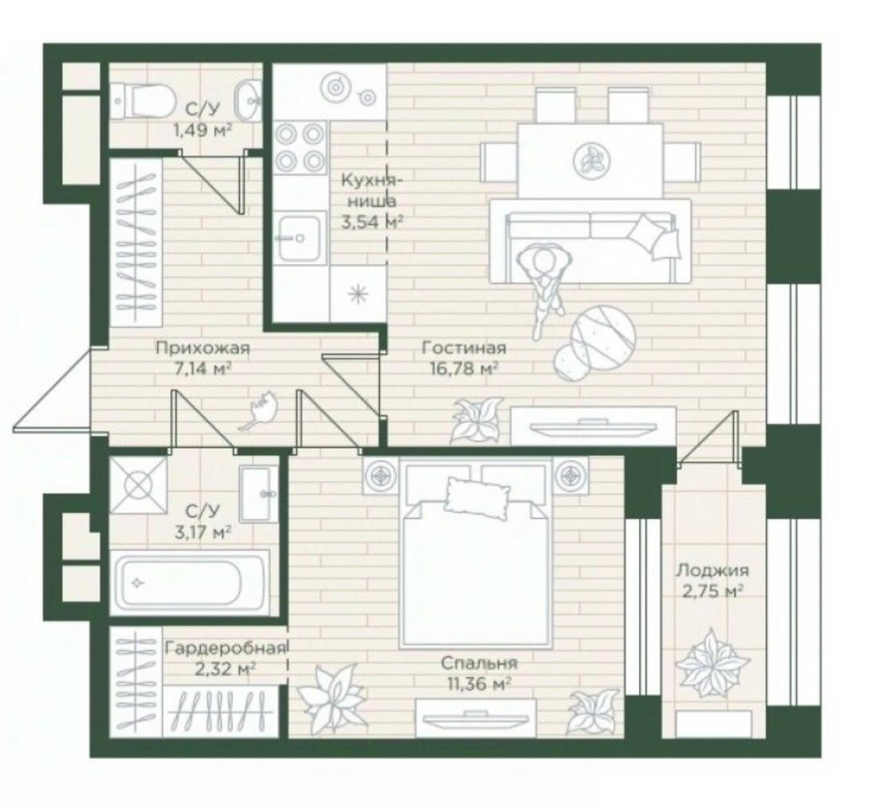 Общая площадь 47.15 м2