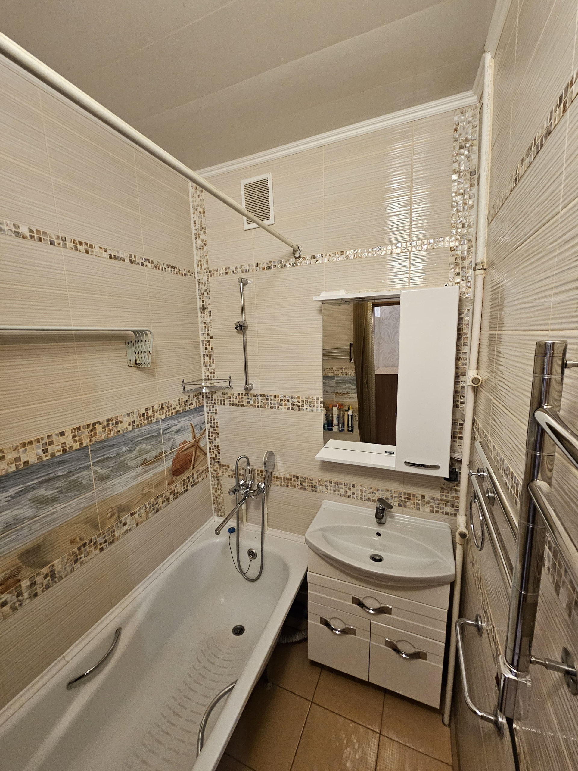 Санузел раздельный, в кафельной плитке.