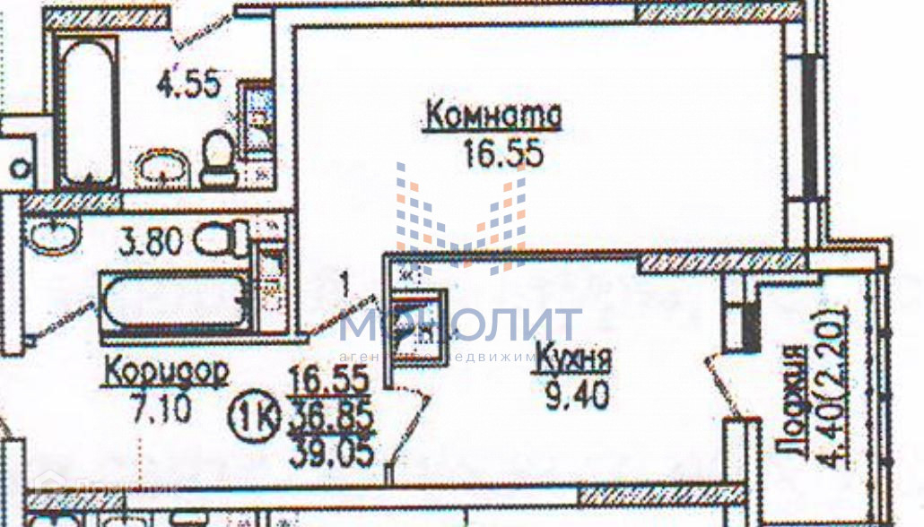 Общая площадь 39.05 м2