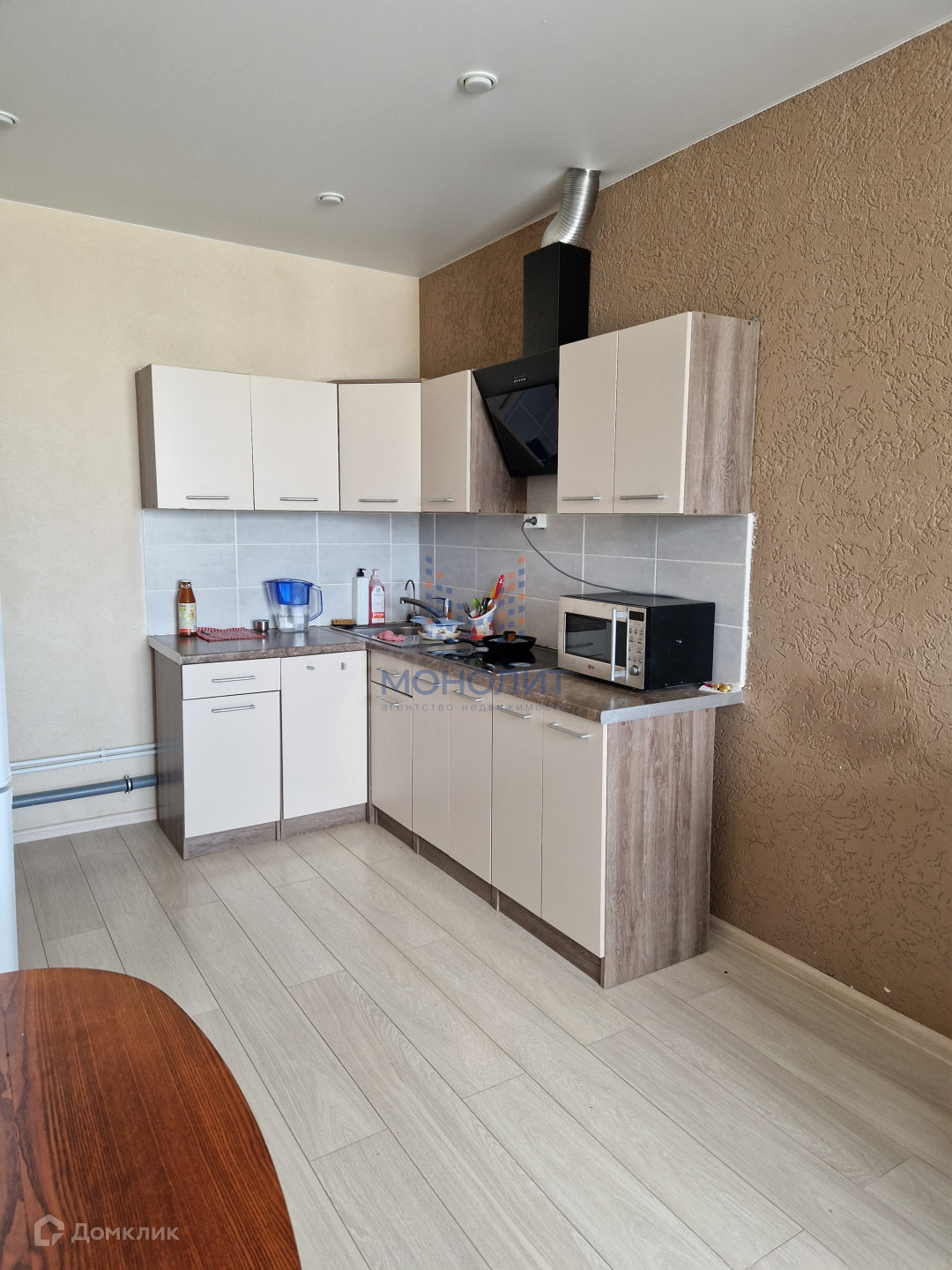 Остается кухонный гарнитур, техника, все, что есть на фото.