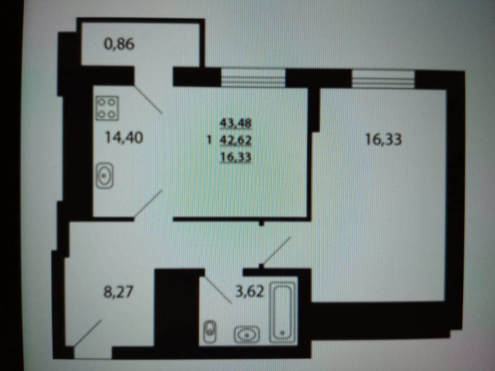 Общая площадь 43 м2