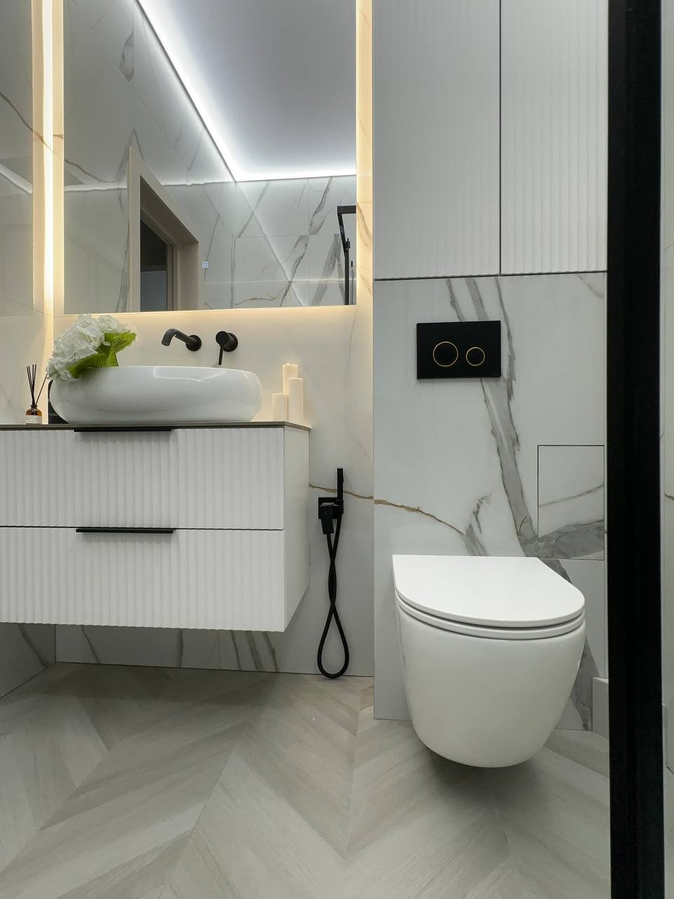 Дорогие отделочные материалы , немецкая сантехника , гардеробные системы с подсветкой.