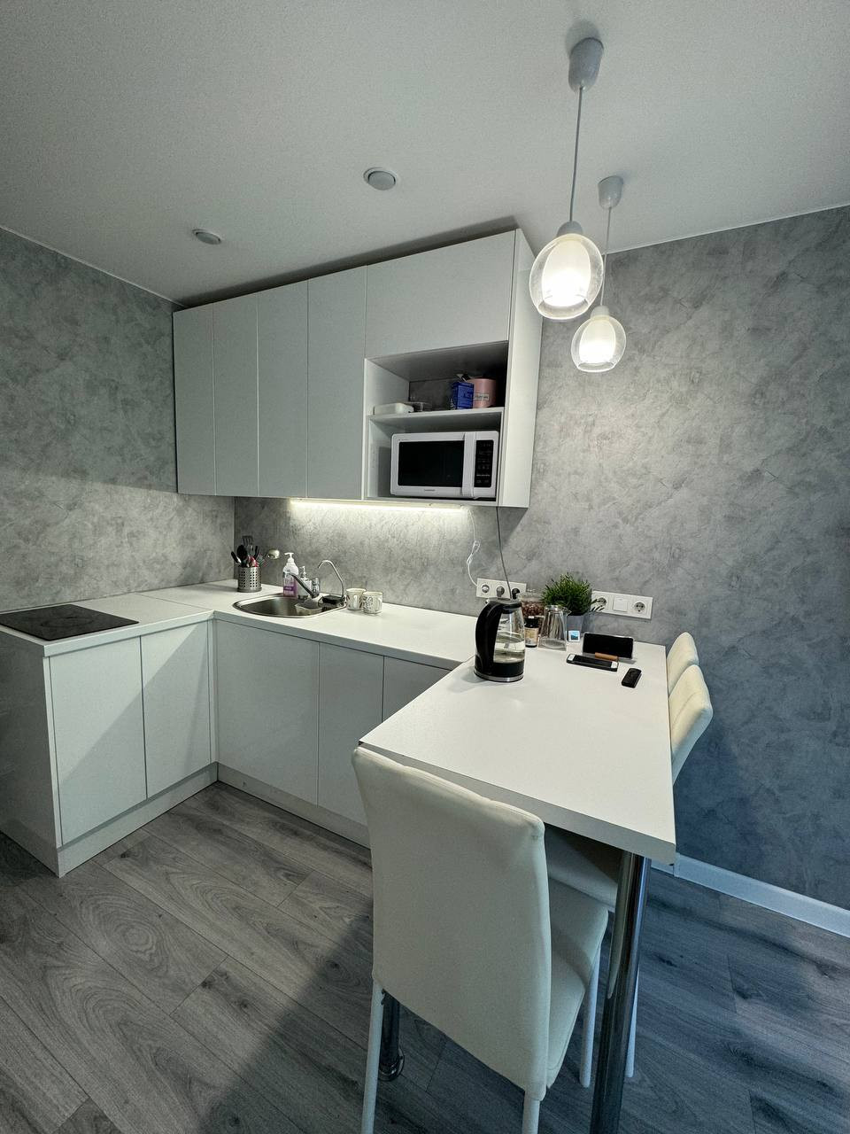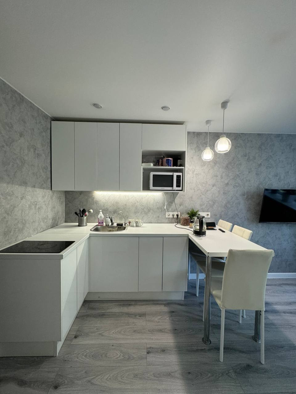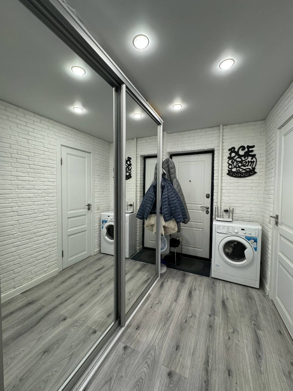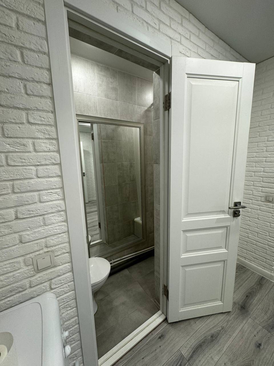 В квартире натяжной потолок, обои, декоративный кирпичик, ламинат, плитка в санузле, заменена вся проводка.