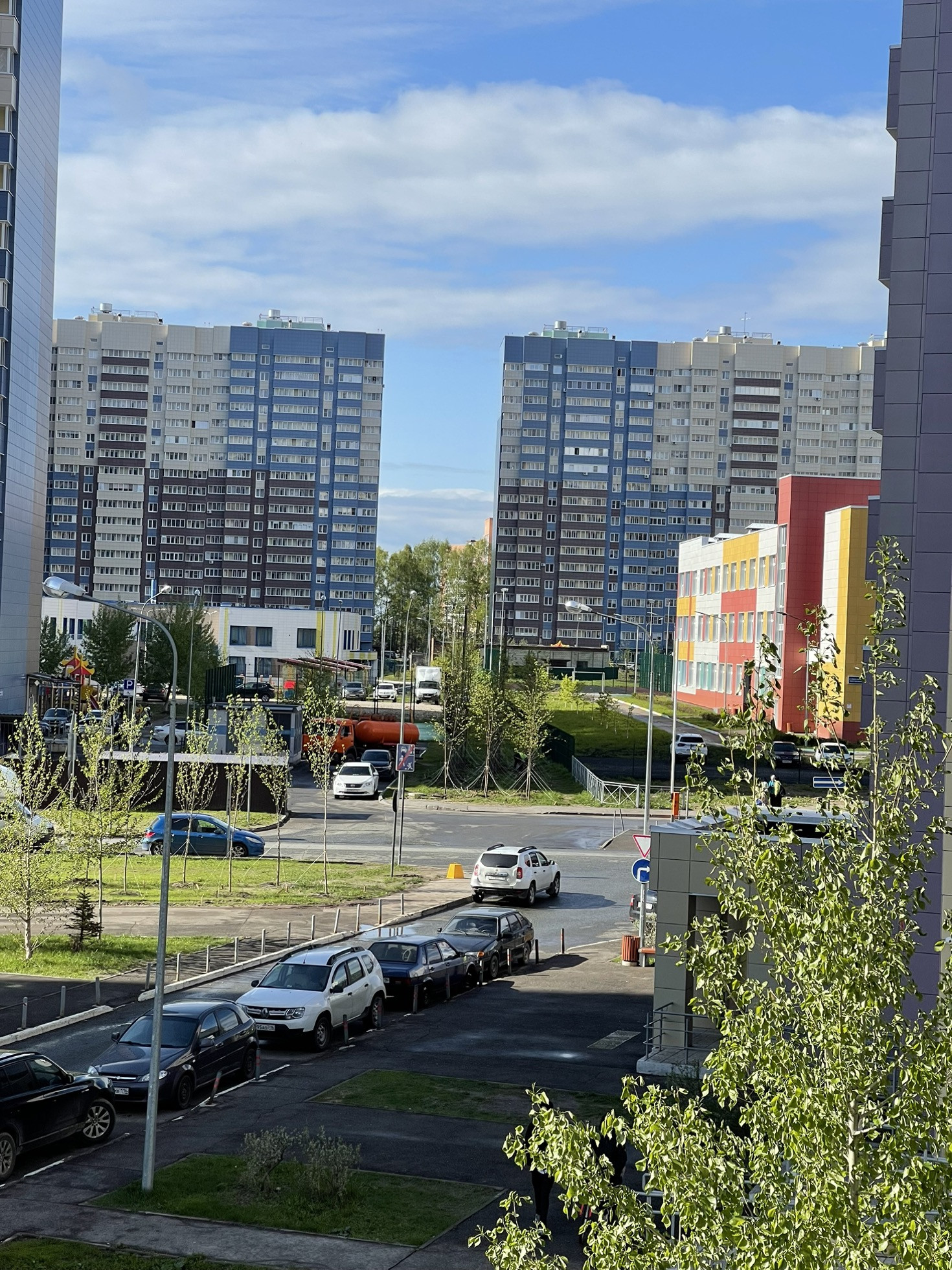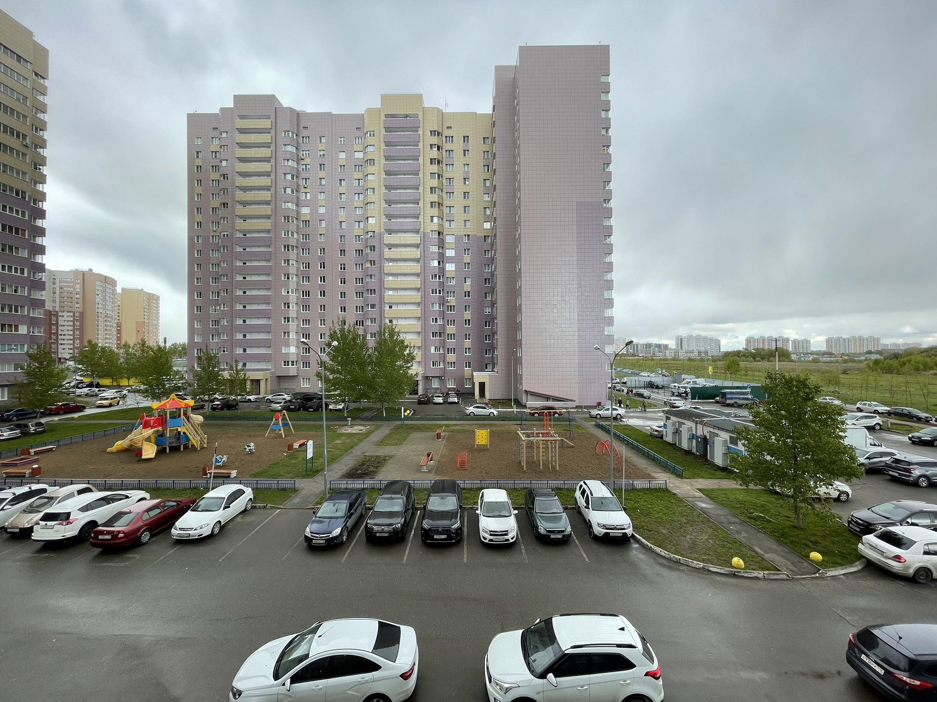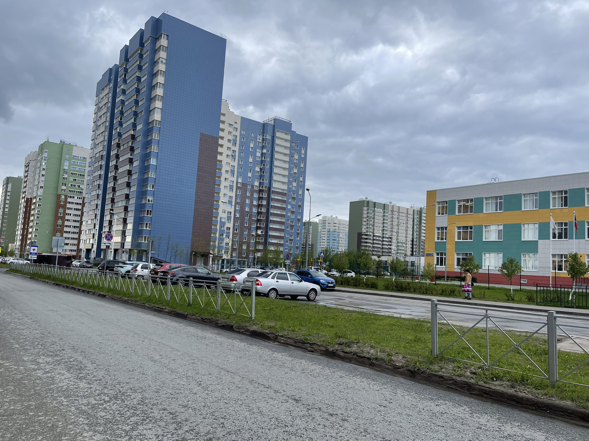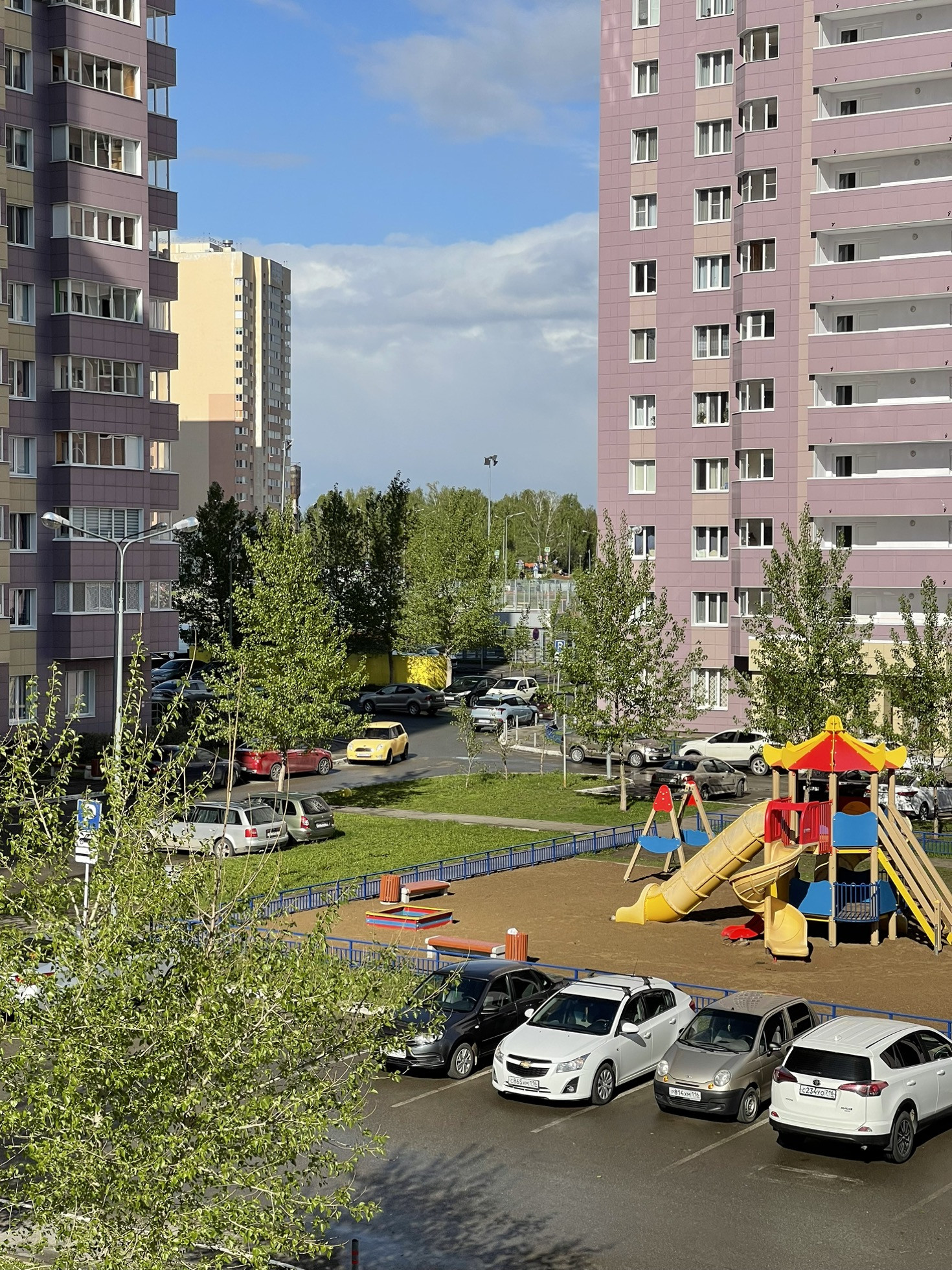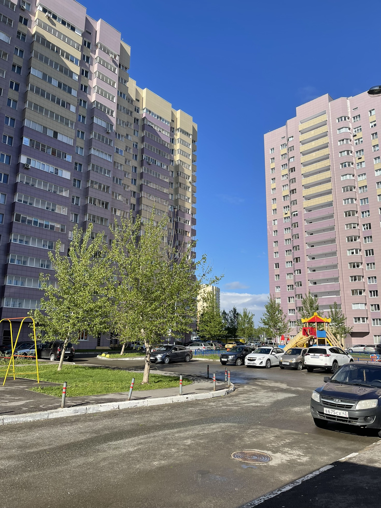 Территория чистая. Двор благоустроенный, не тупиковый. С парковкой проблем нет, со всех сторон дома имеется парковка для автомобилей. Поэтому всегда есть места хоть в любое время суток. Во дворе имеется детская и спортивная площадки.