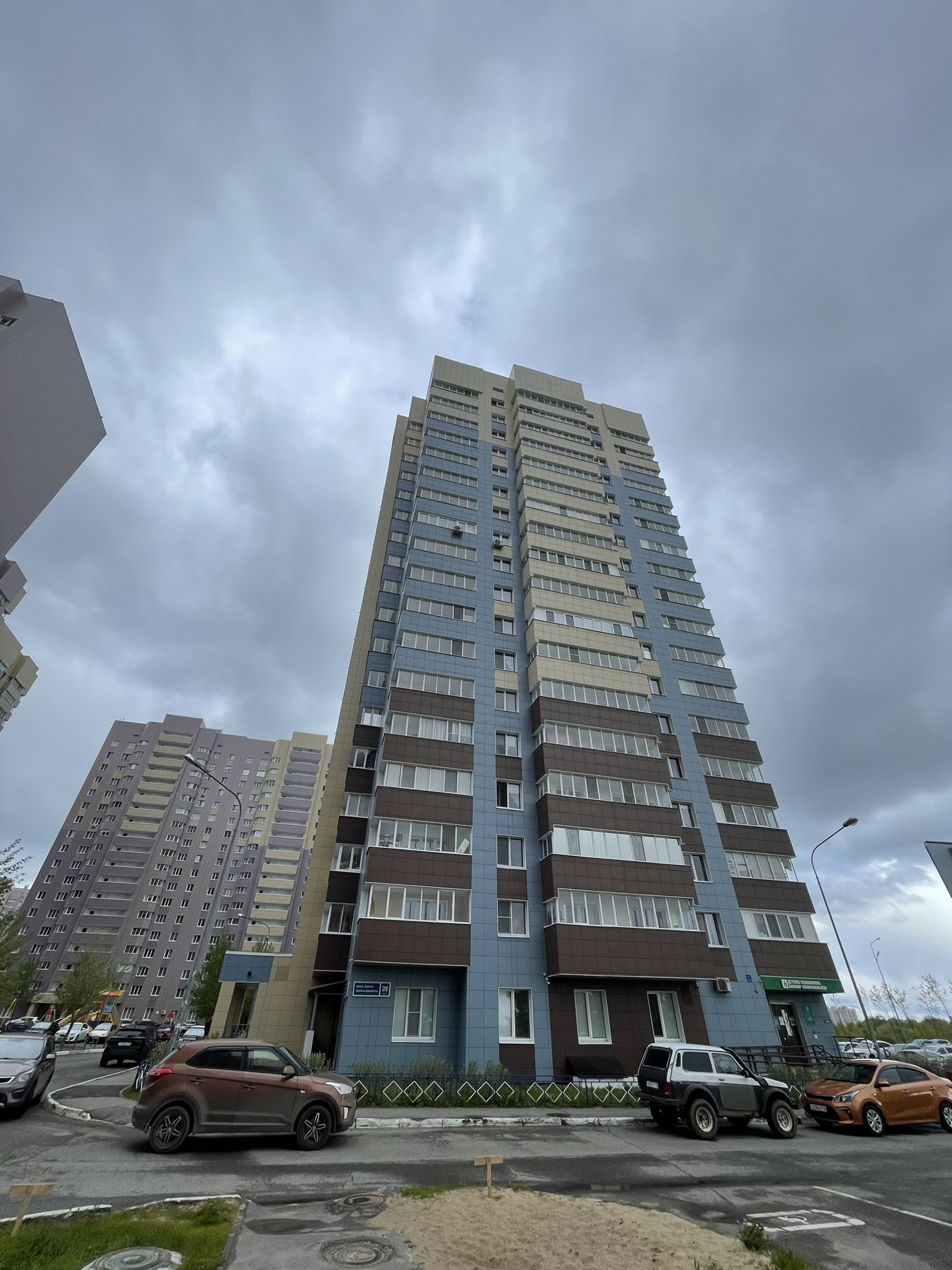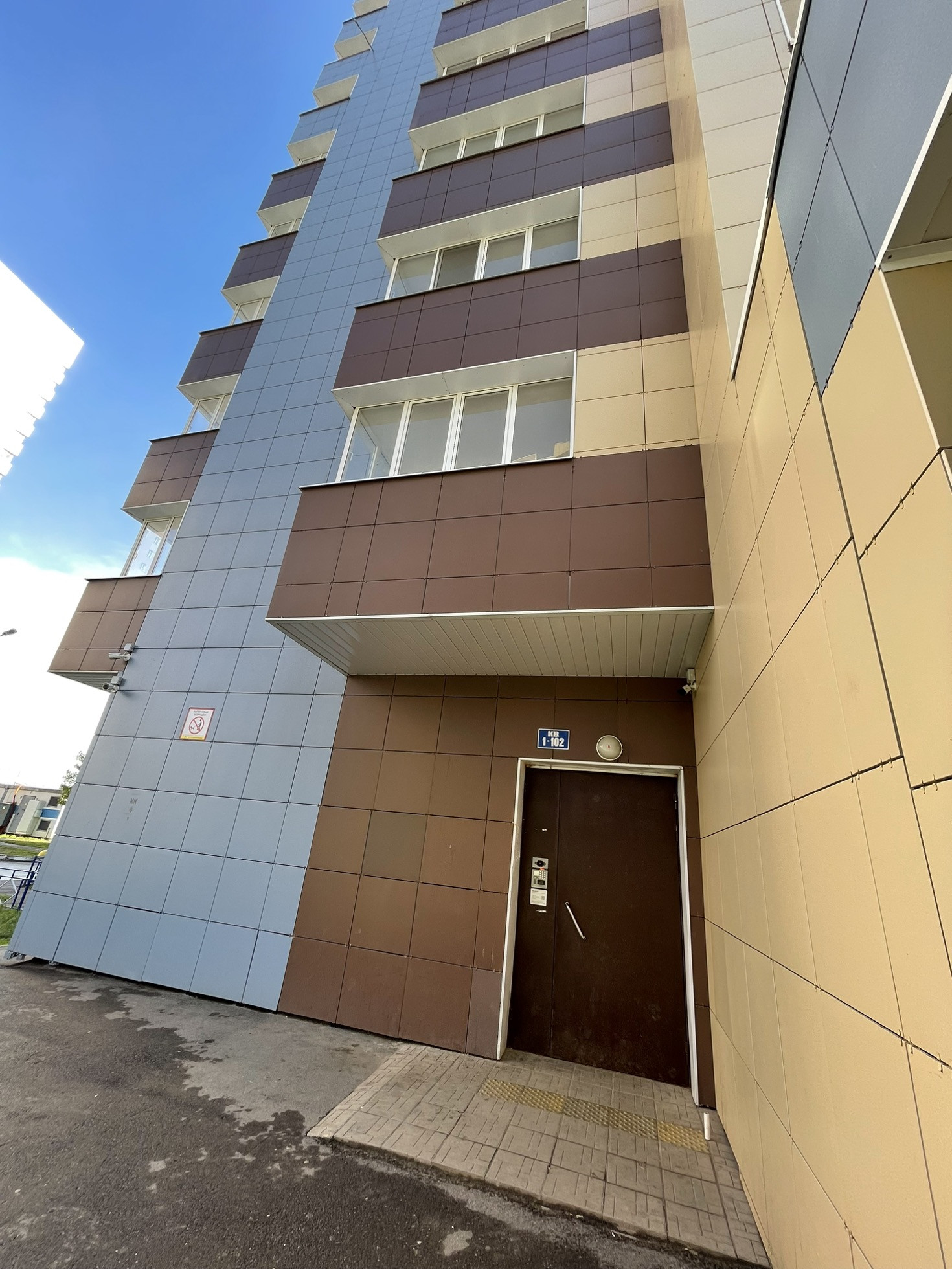 Дом - 19-ти этажный, 2017 года постройки, из газобетонных блоков с наружной отделкой керамогранитной плиткой. Все перегородки - кирпичные. В подъезде чисто. Соседи дружелюбные, хорошие, спокойные. Установлен домофон, видеонаблюдение в подъезде, лифте и по периметру дома. Имеется два лифта (грузовой и пассажирский).