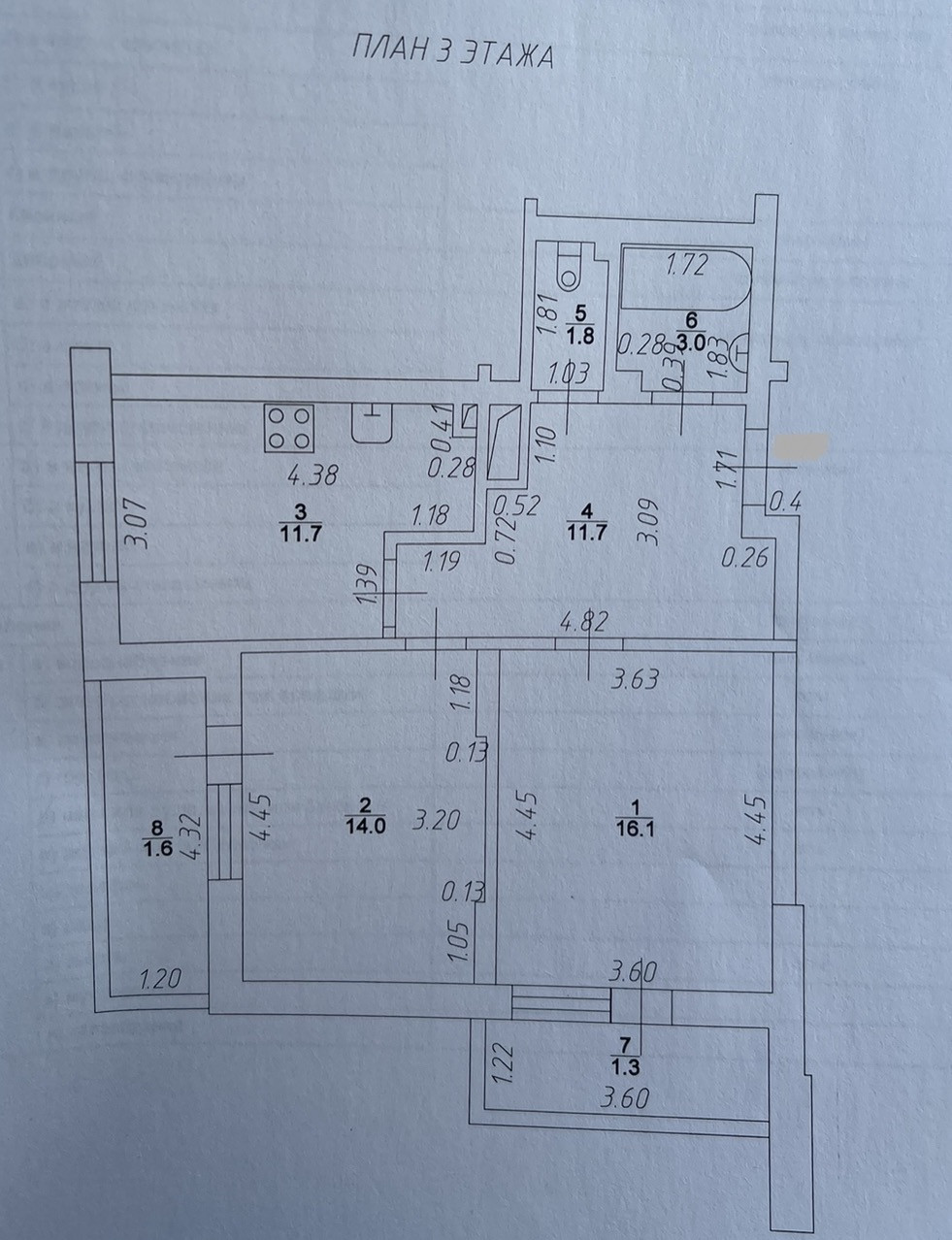 Квартира расположена на 3 этаже. Квартира большая, светлая, уютная, теплая, в хорошем состоянии. Окна пластиковые, двери филенчатые, потолки натяжные, на полу линолеум. Общая площадь квартиры – 58,3 кв.м. (61,2 кв.м. с учетом балкона), кухня - 11,7 кв.м, жилая – 30,1 кв.м. Все комнаты изолированные. Зал - 16,1 кв.м., спальня - 14,0 кв.м. Санузел - раздельный, обшит пластиком, на полу плитка. Счетчики на все. Имеется 2 балкона (выход на балкон из зала и спальни). Окна выходят во двор.