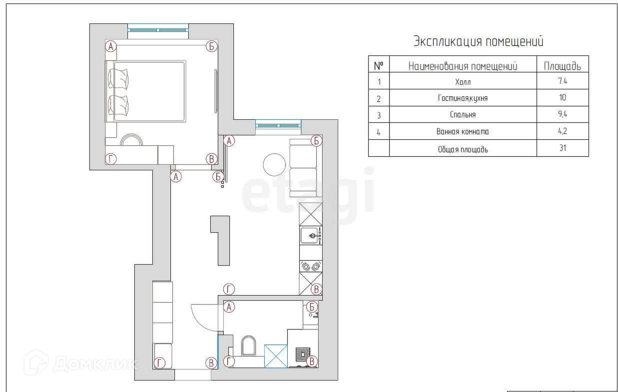 Общая площадь: 30 м².