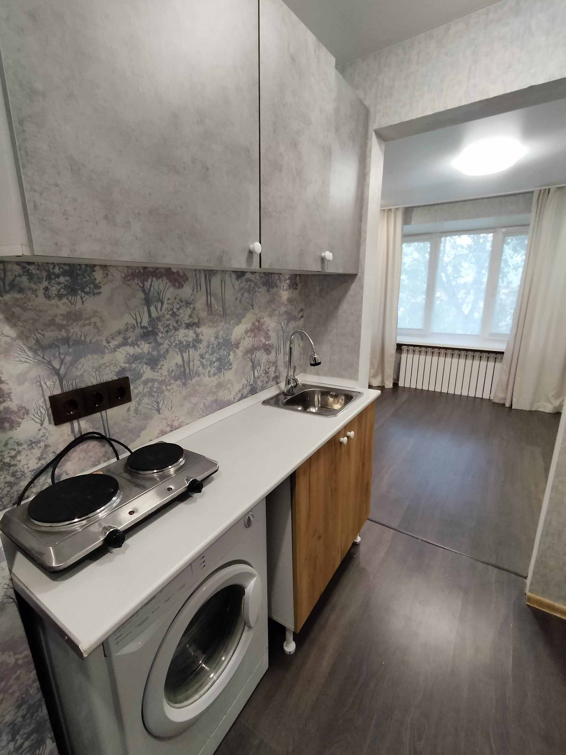 Продается уютная светлая квартира-студия на 4 этаже кирпичного дома с панорамным окном. В квартире произведен косметический ремонт, новый кухонный гарнитур, также есть стиральная машина и электрическая плитка, водонагреватель. ремонт выполнен в светлых тонах.