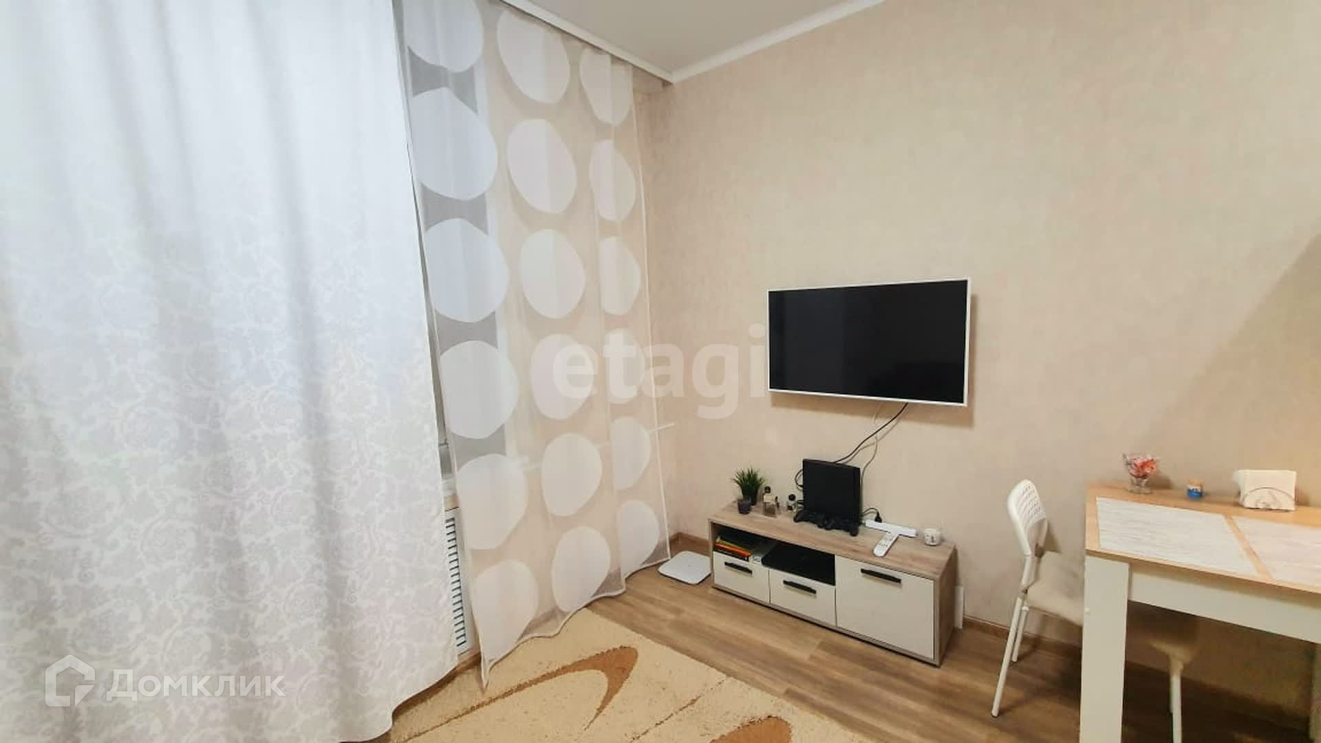На полу качественный ламинат, обои в светлых тонах,