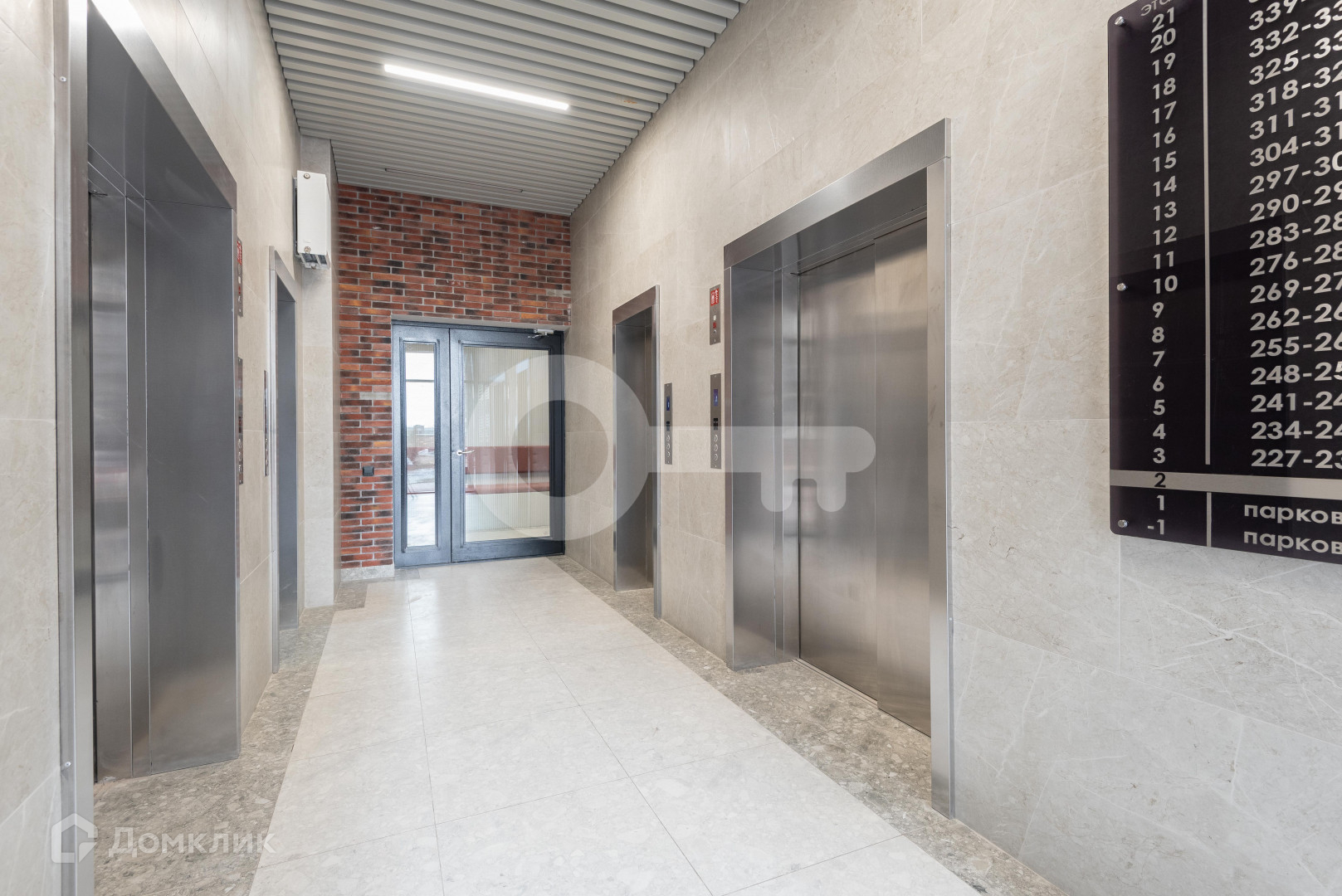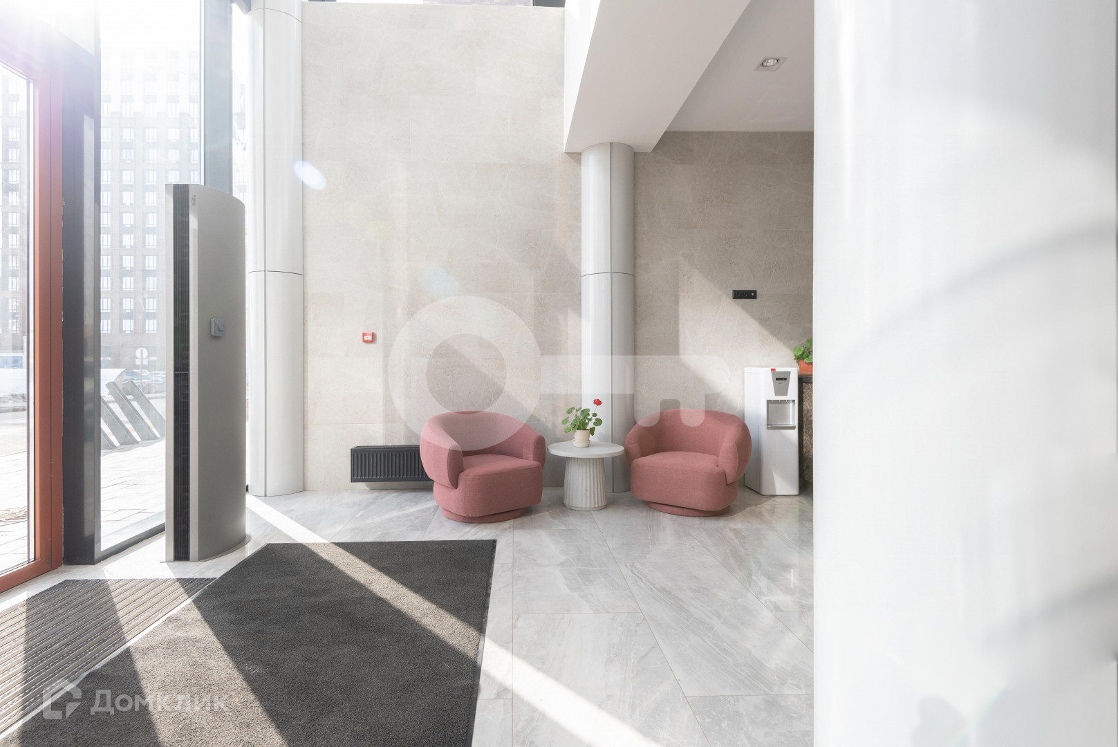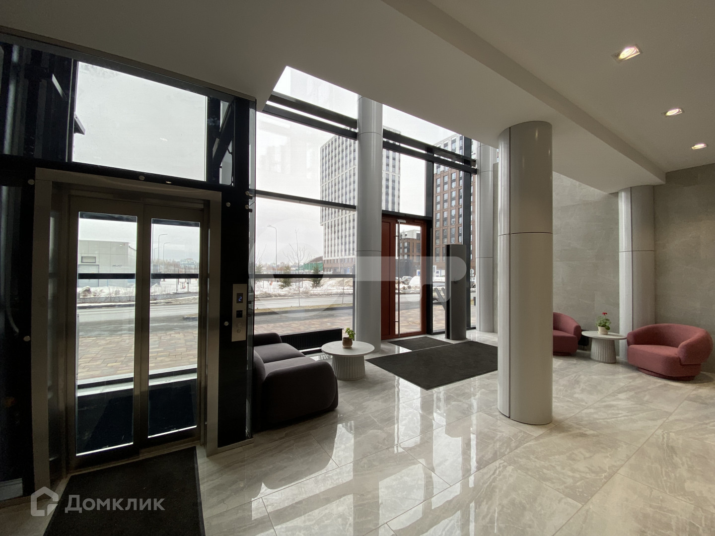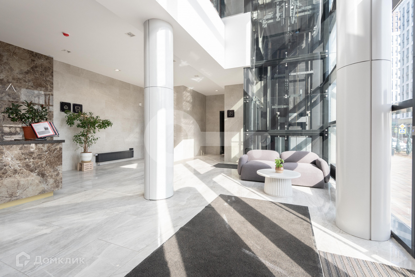 Просторный и красивый холл с панорамными окнами в пол. Консьерж, закрытый двор, вместительный подземный паркинг.