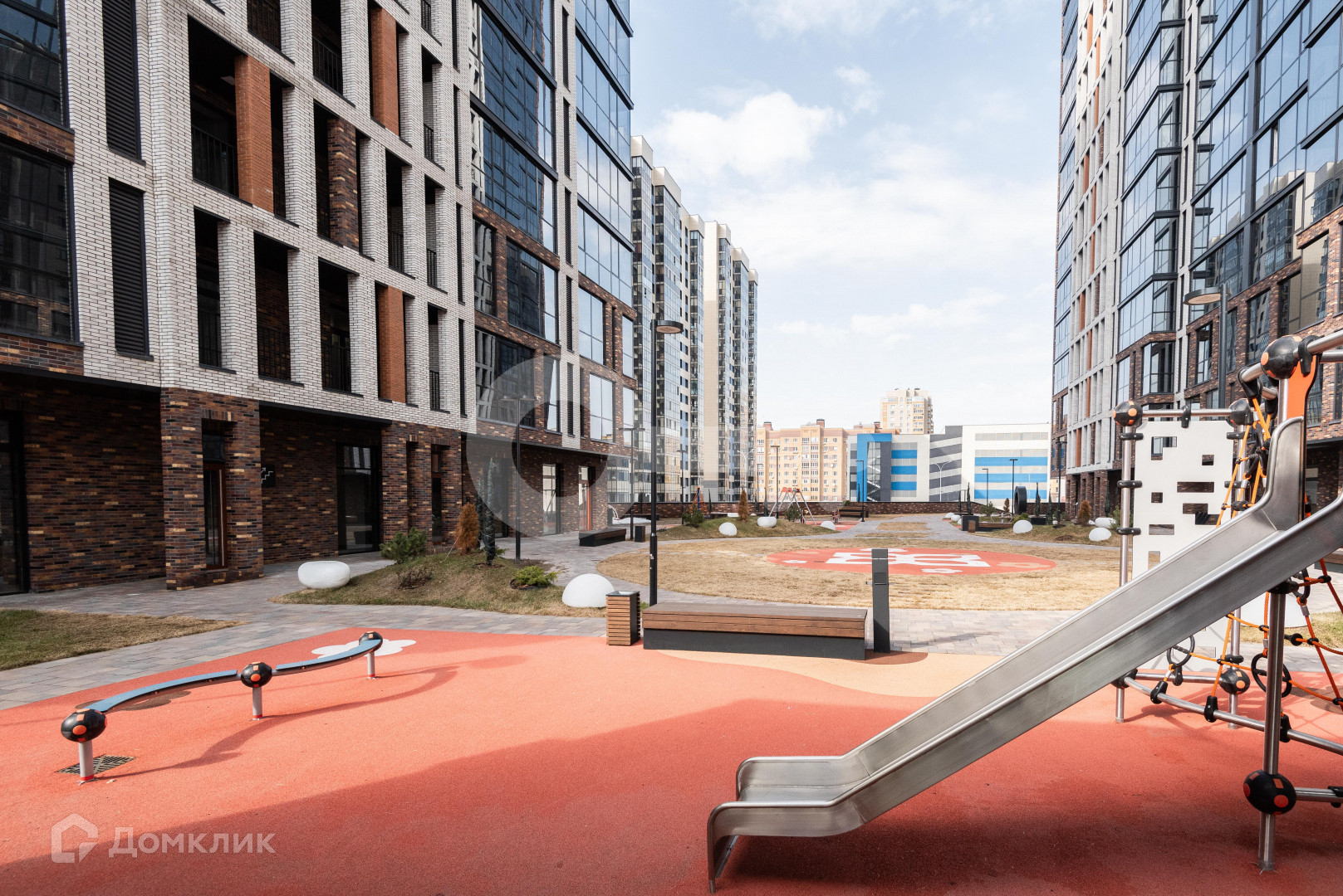 Мини-парк у вас прямо под окнами террасные дорожки, ландшафтное озеленение, дизайнерское освещение, зона для занятий силовыми тренировками, аэробикой или йогой, а для самых маленьких жителей - нескользящий слой покрытия детской игровой площадки с подвесными мостиками, башнями и горками.