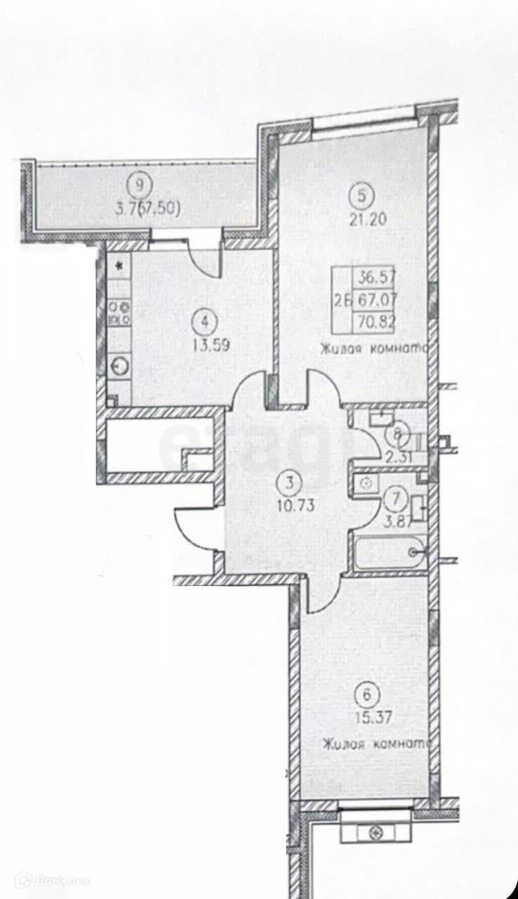 Общая площадь 70.8 м2