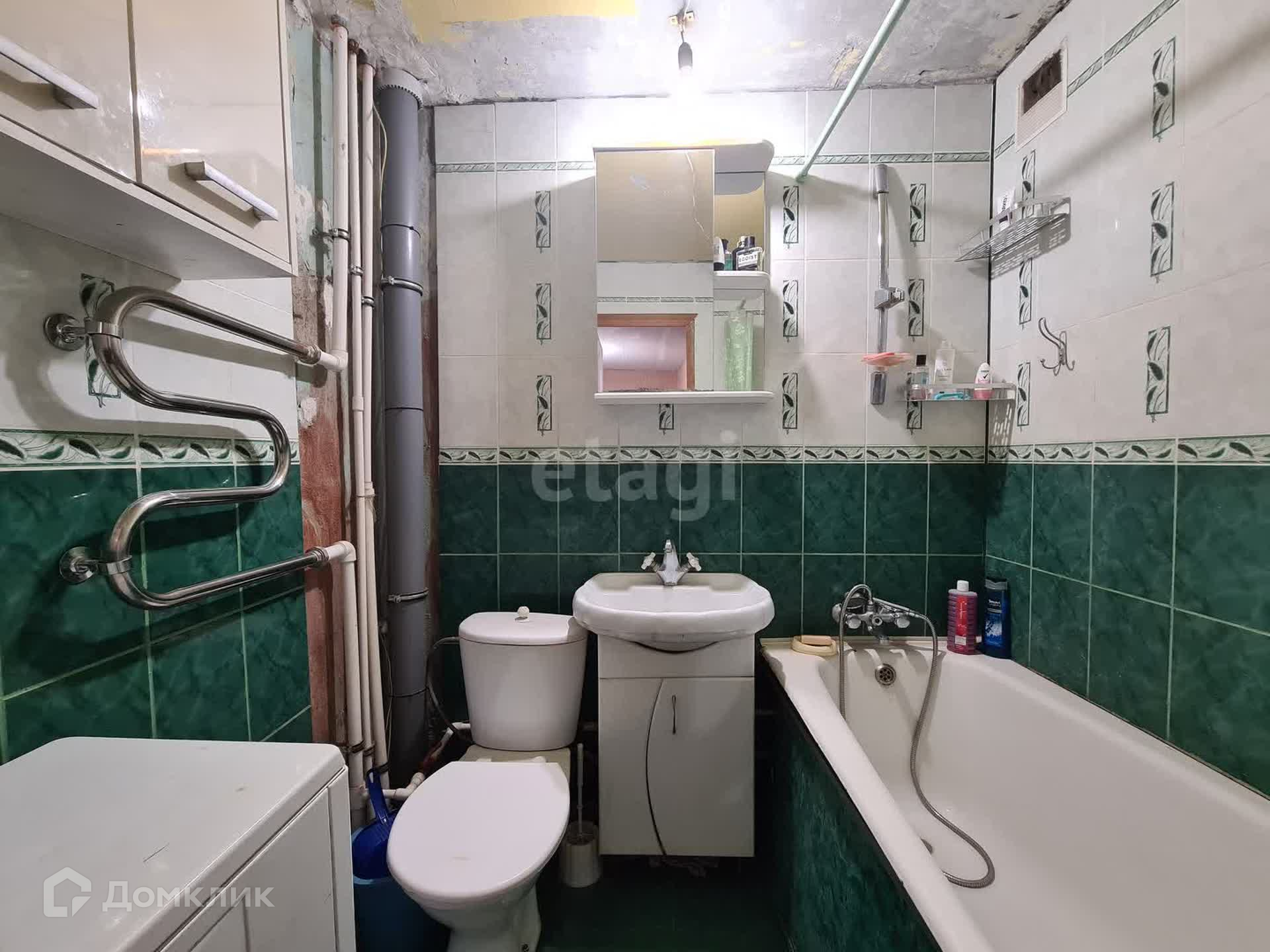 Совмещенный санузел в кафеле.