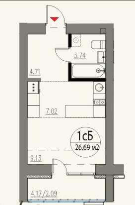 Общая площадь 26.7 м2