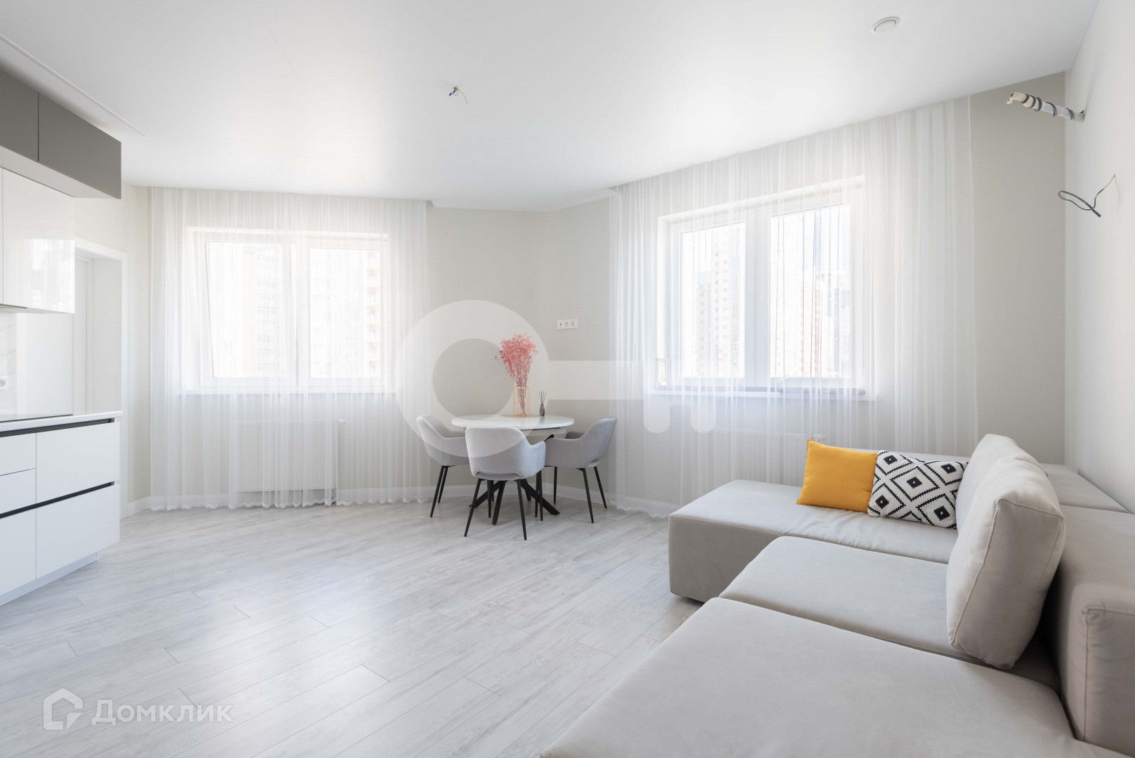 -Общая площадь 73.7м2 без учёта балкона, 2 комнаты, кухня+гостиная, высота потолков 3м,