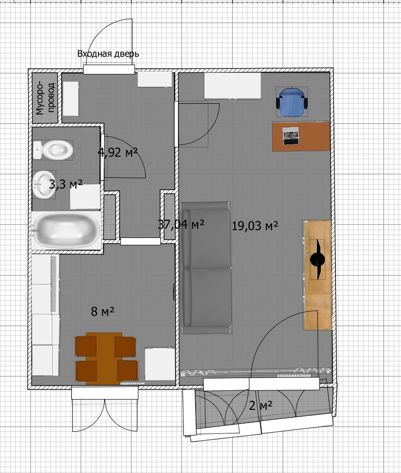 Общая площадь 37.4 м2