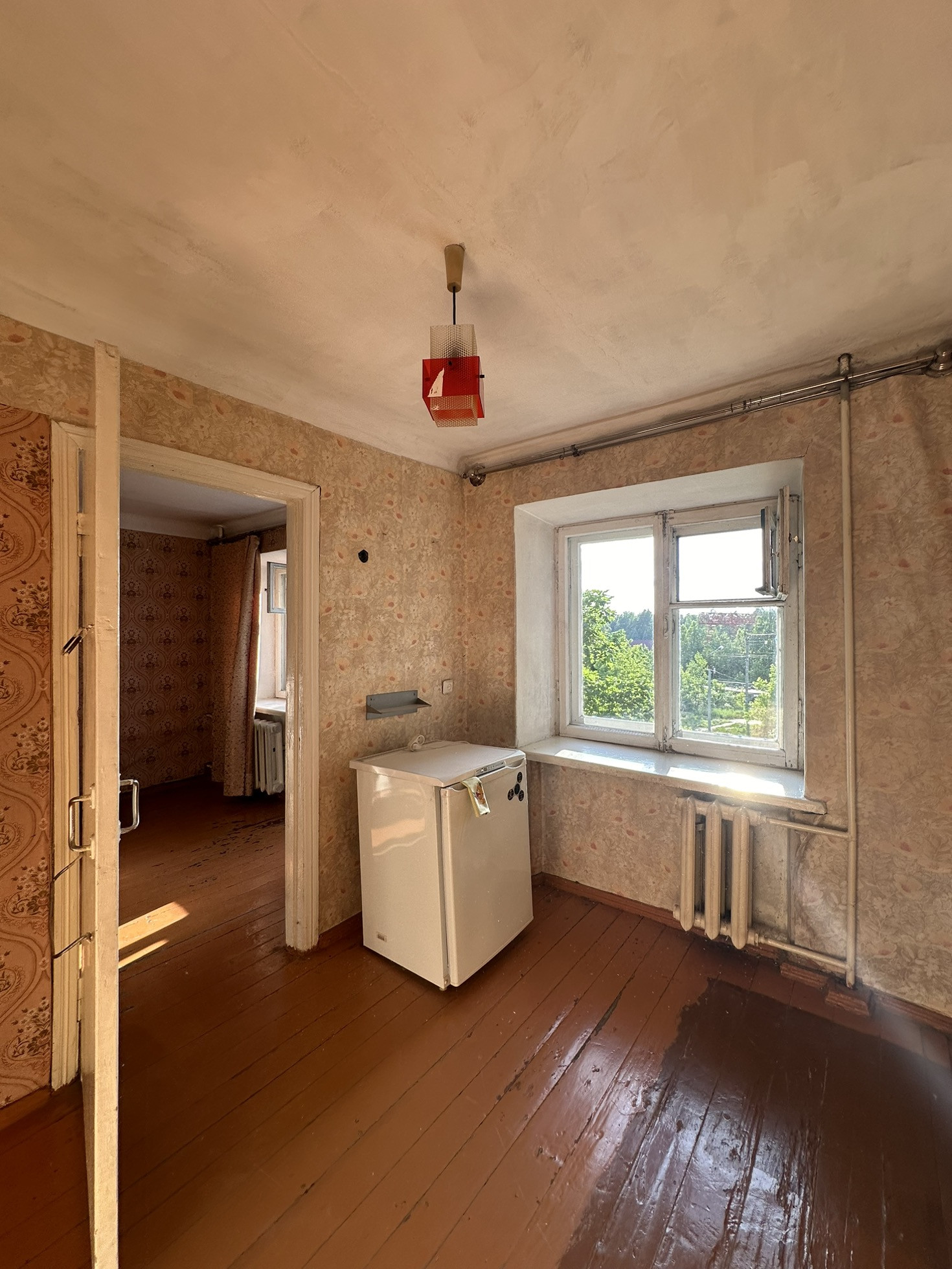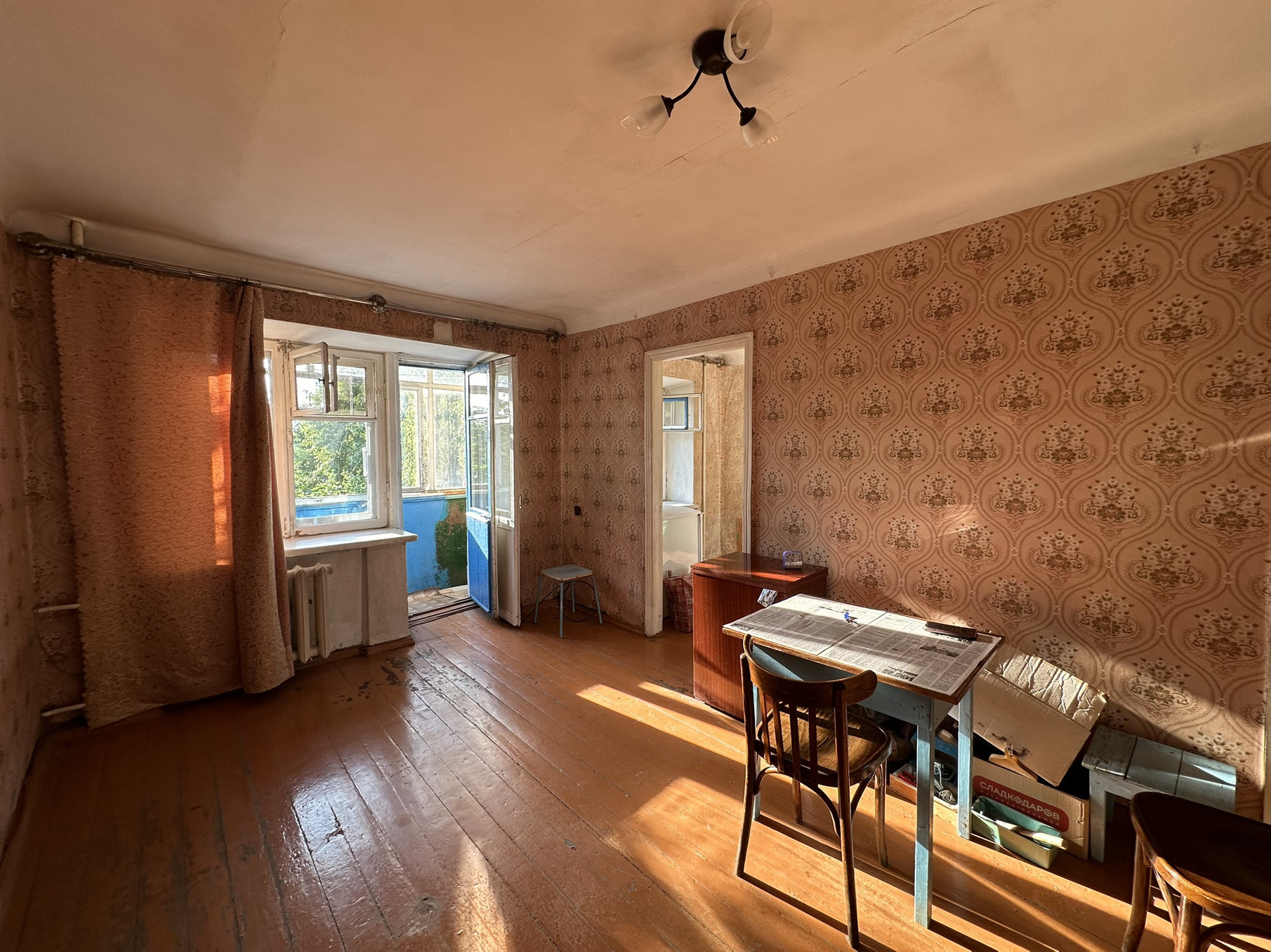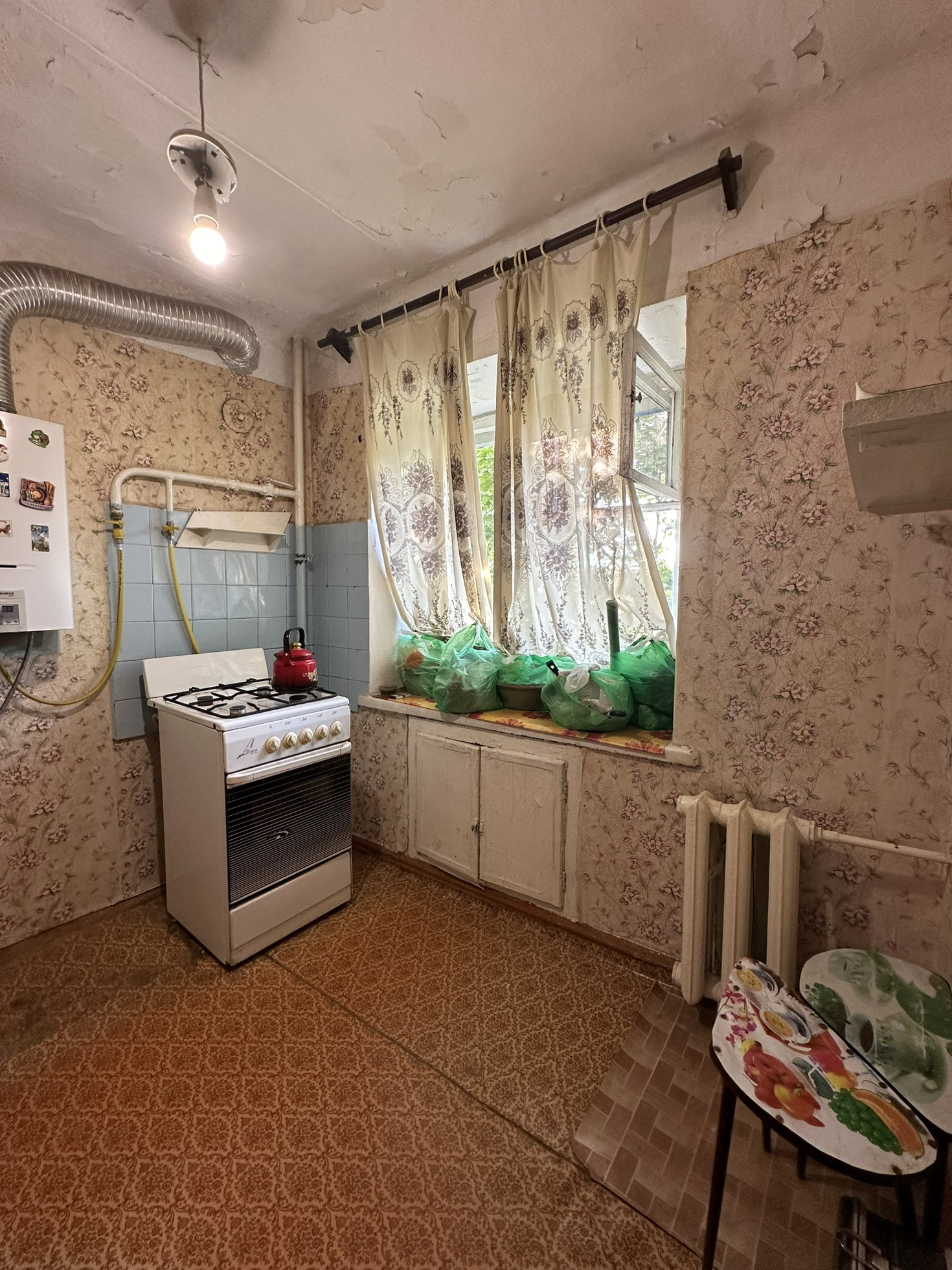 Сама квартира требует ремонта, окна - деревянные, счетчики установлены.
