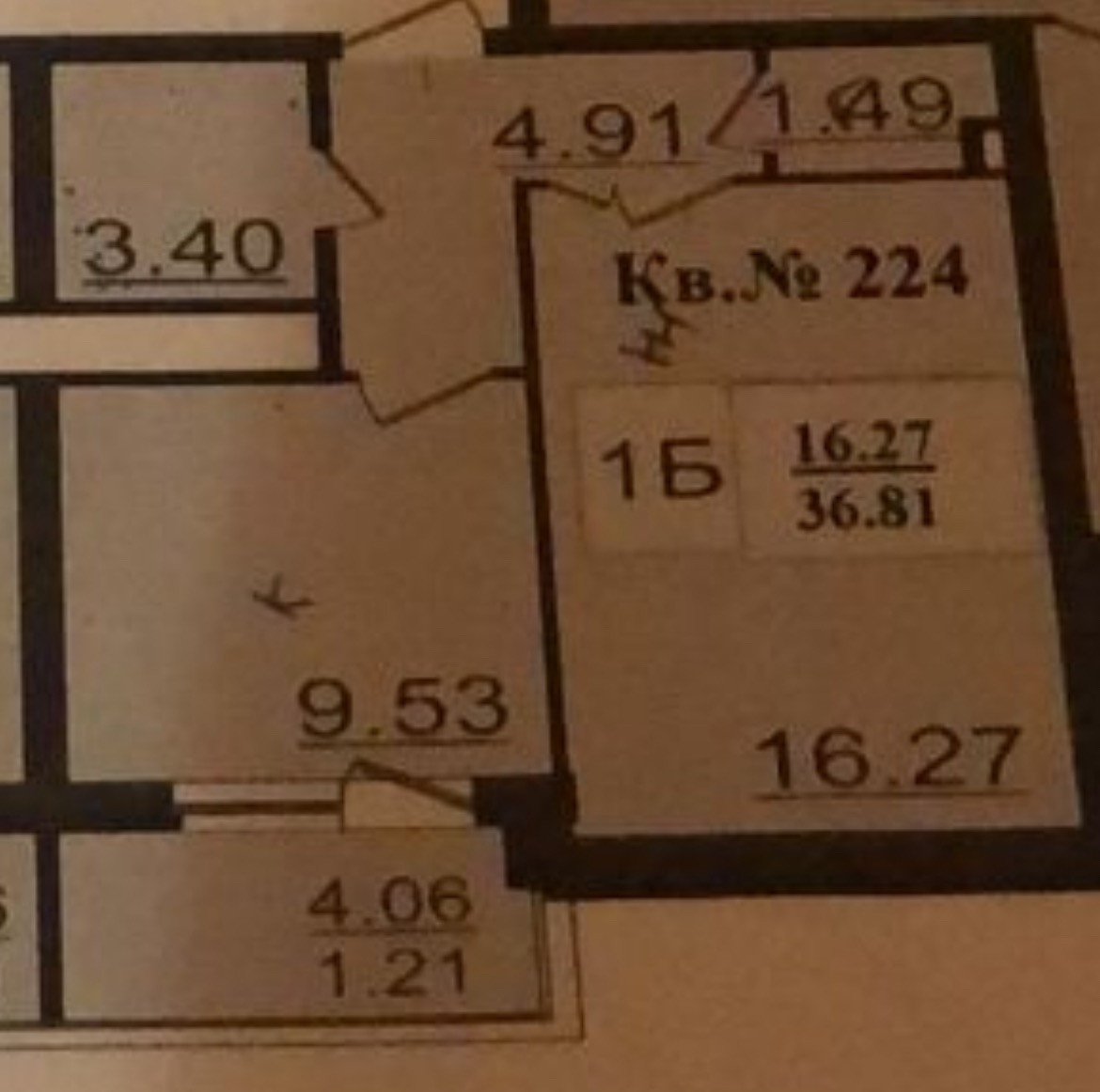 Жилая площадь 16.27 м2
