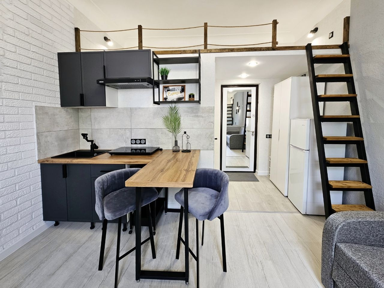- своя кухня с индукционной плитой и холодильником