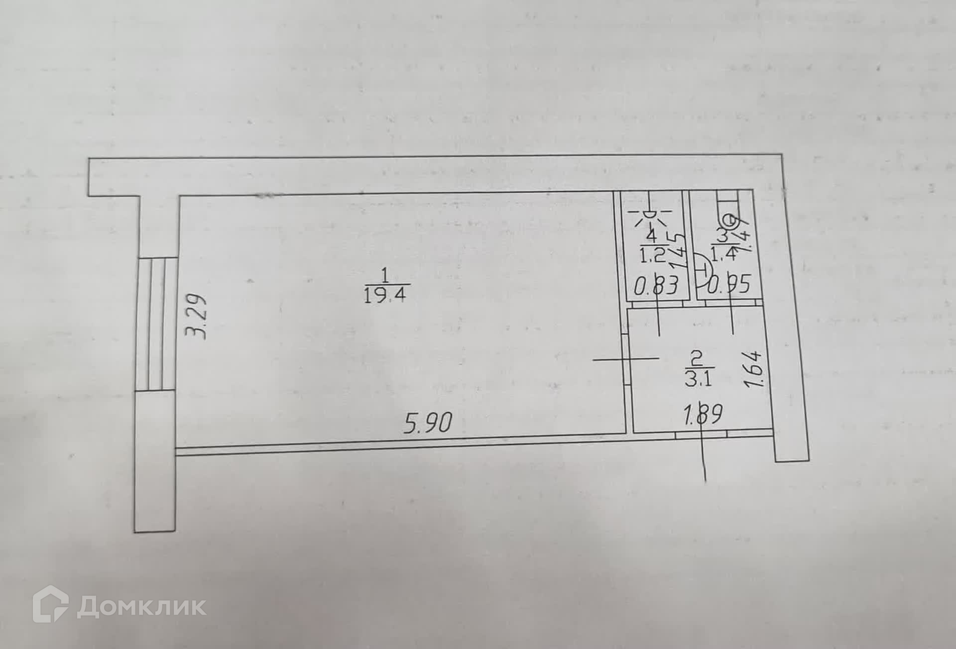 Общая площадь 25.1 м2