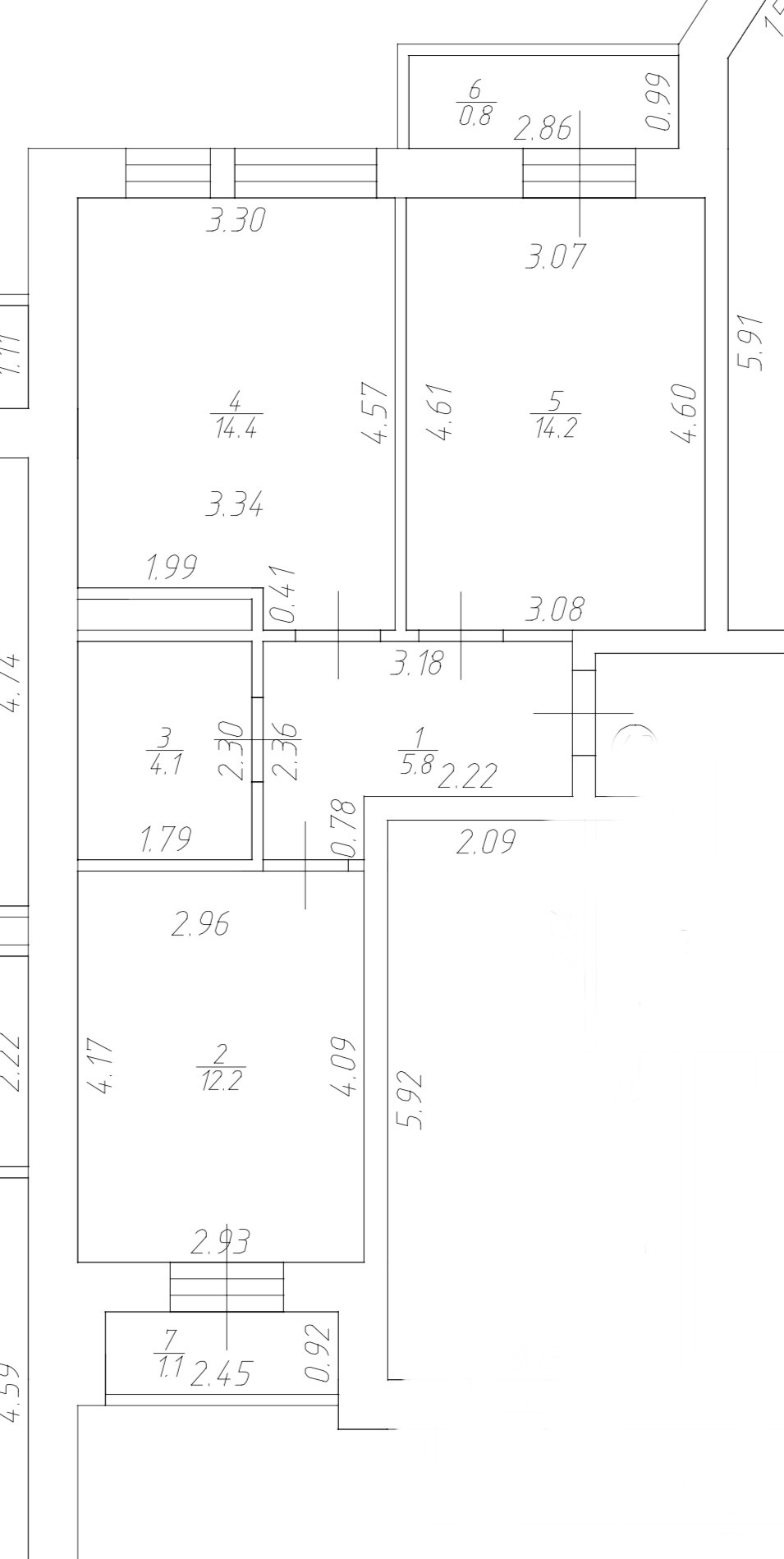 Жилая площадь 26.4 м2