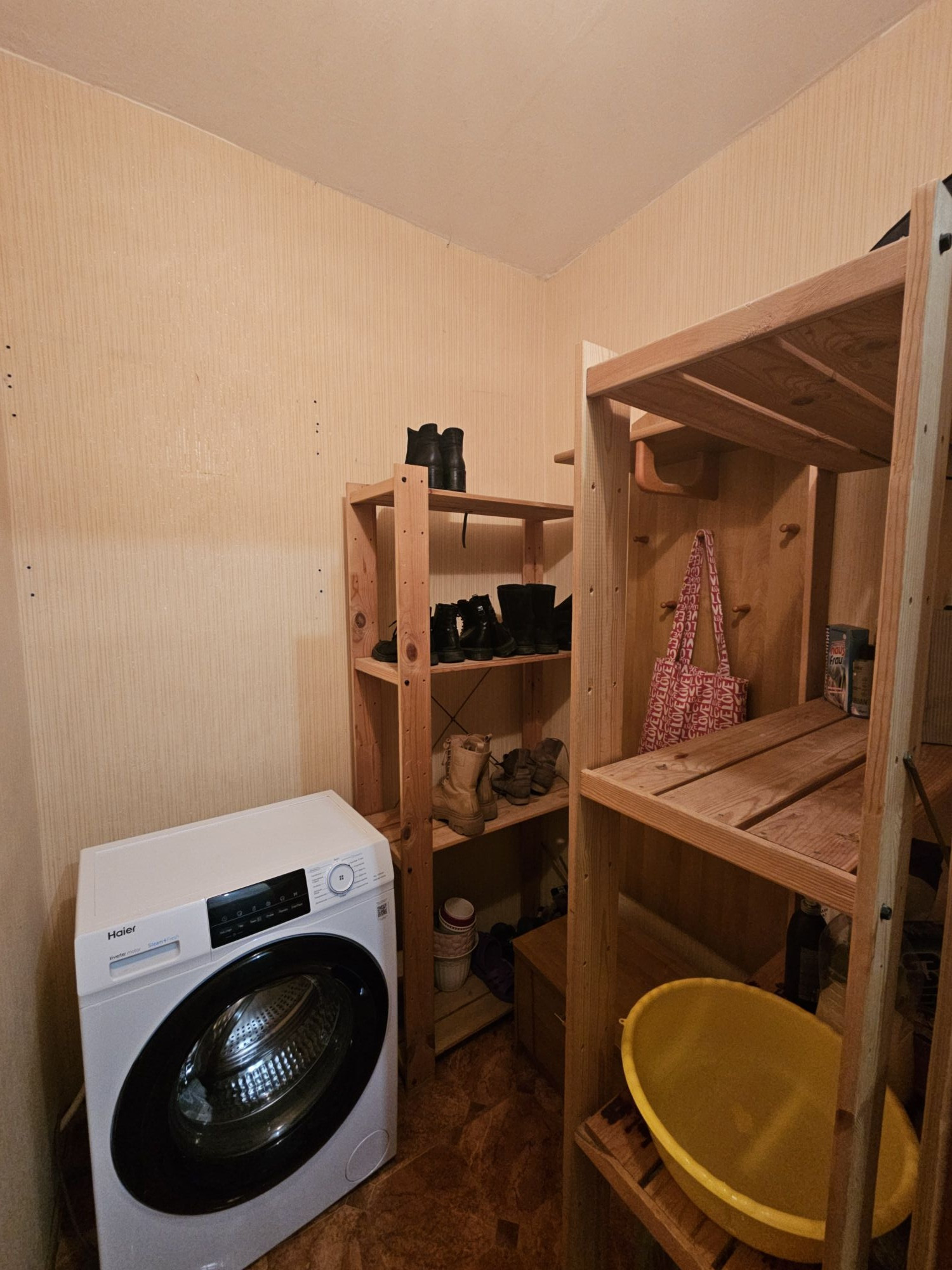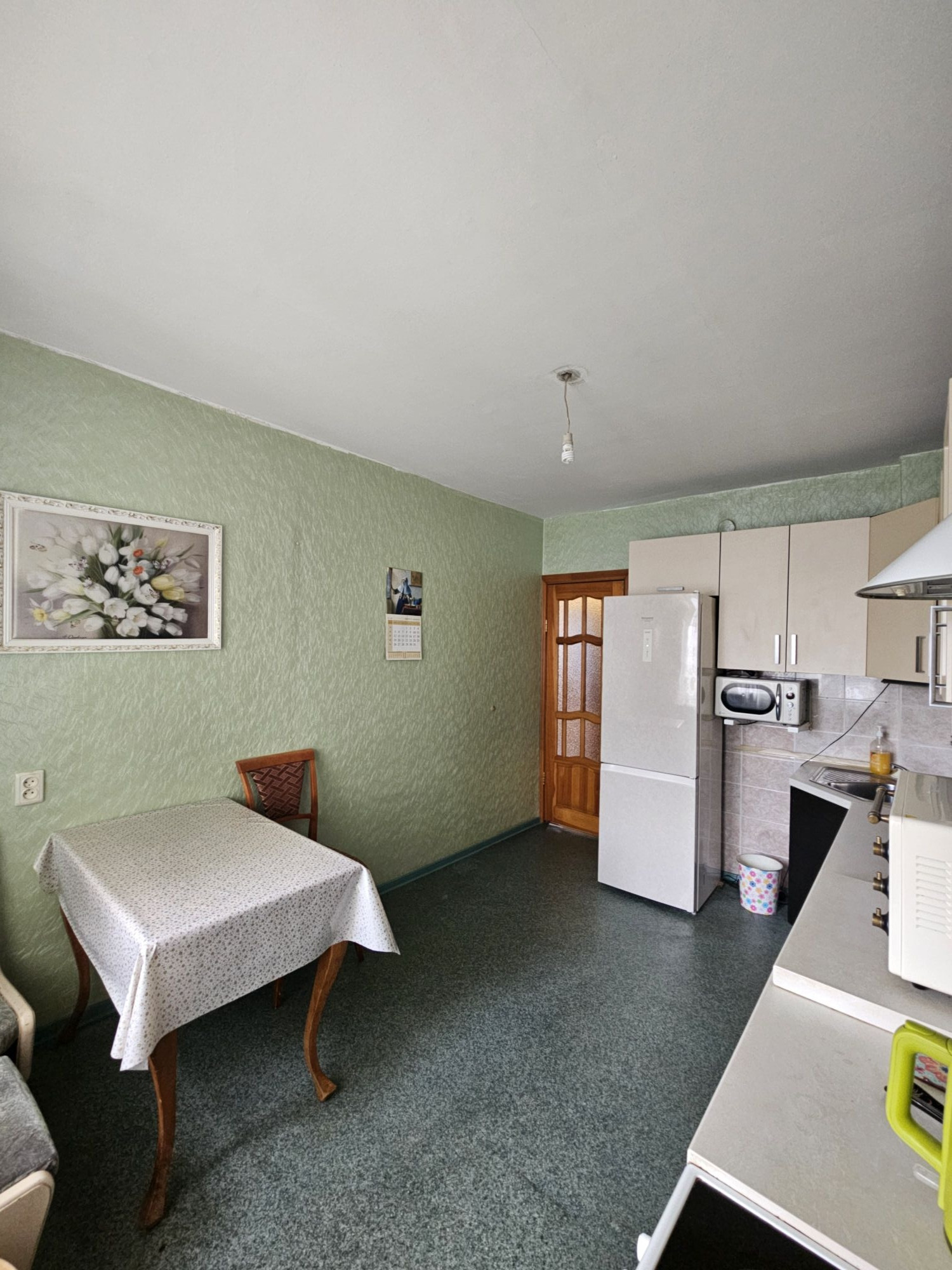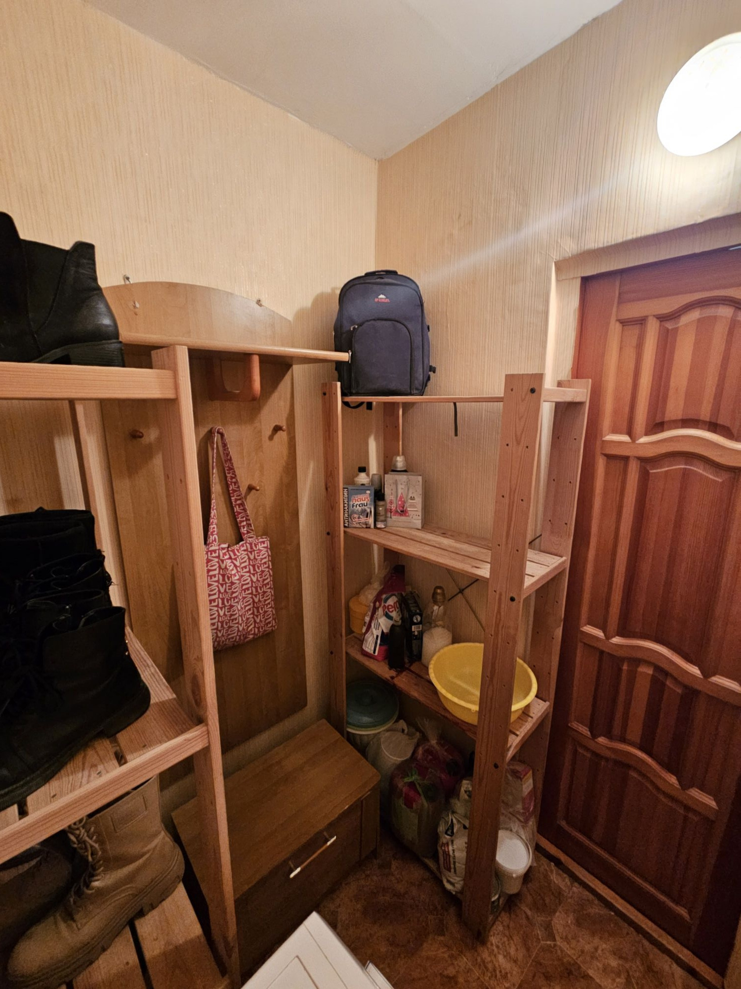 Новым хозяевам остается шкаф-купе, кухонный гарнитур и плита, а также полки в кладовой.