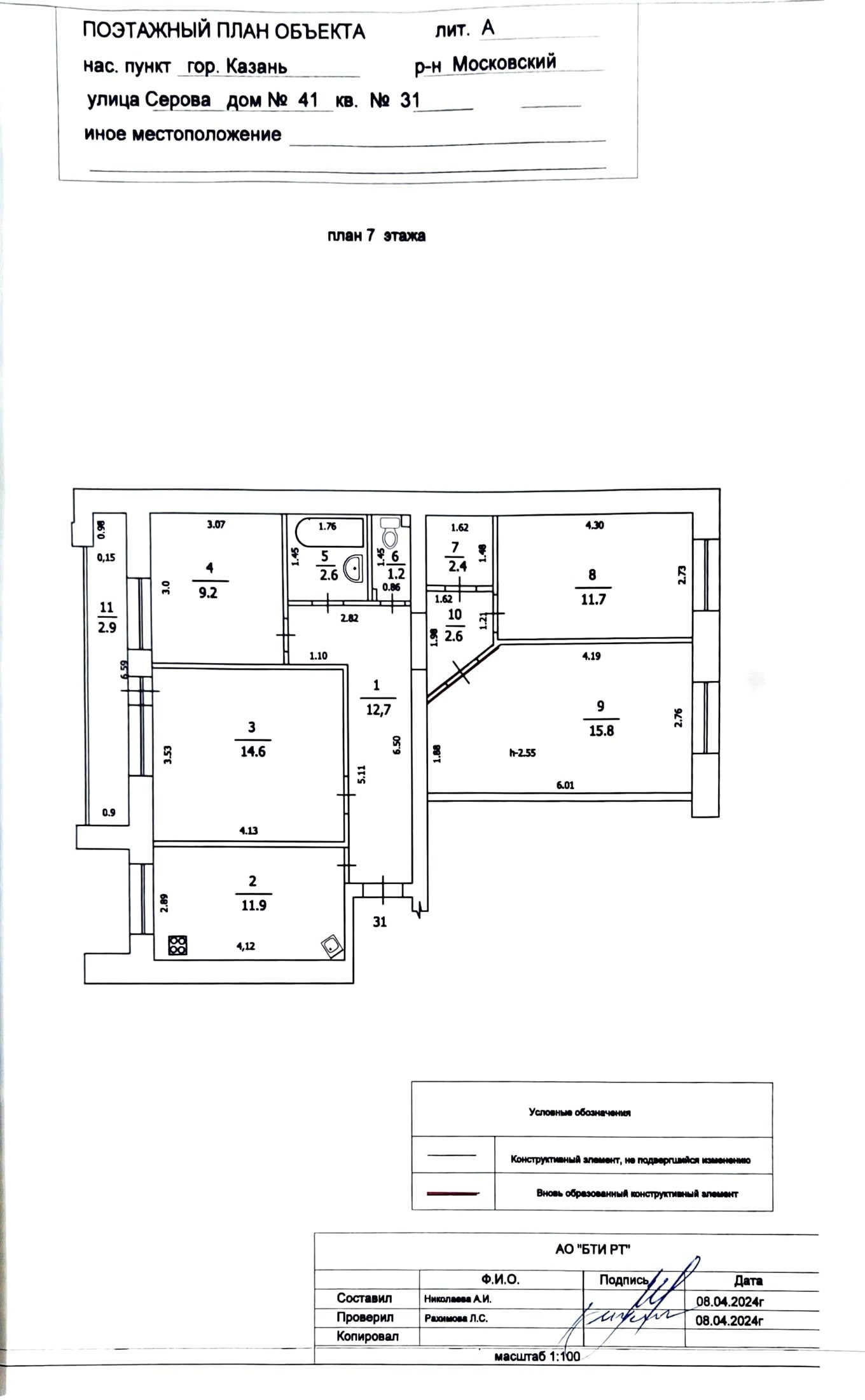 4-комнатная квартира, 88 м2, этаж 7 / 10, на продажу в Казани, улица Серова, 41