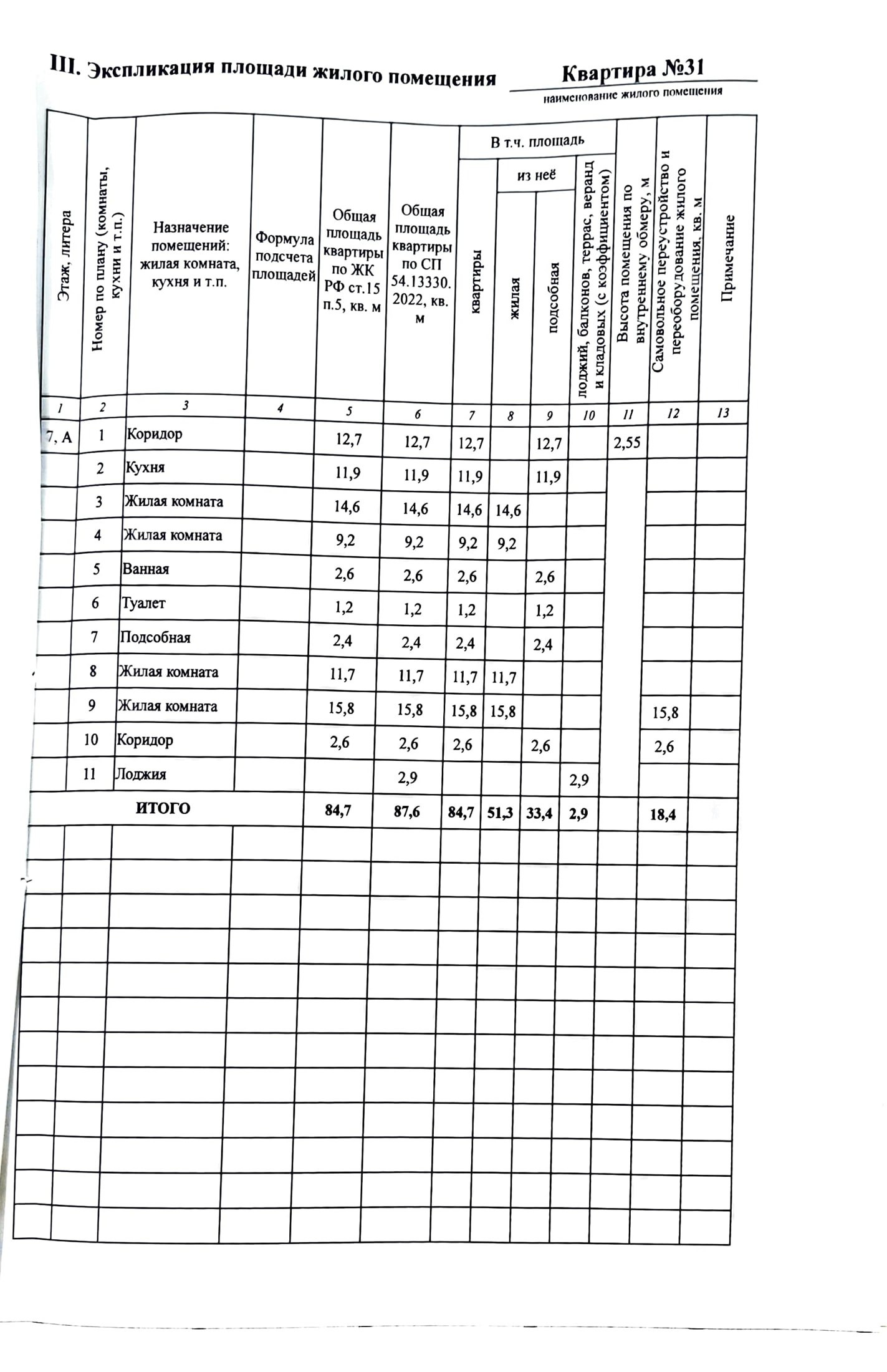 Высота потолков 2.6 м