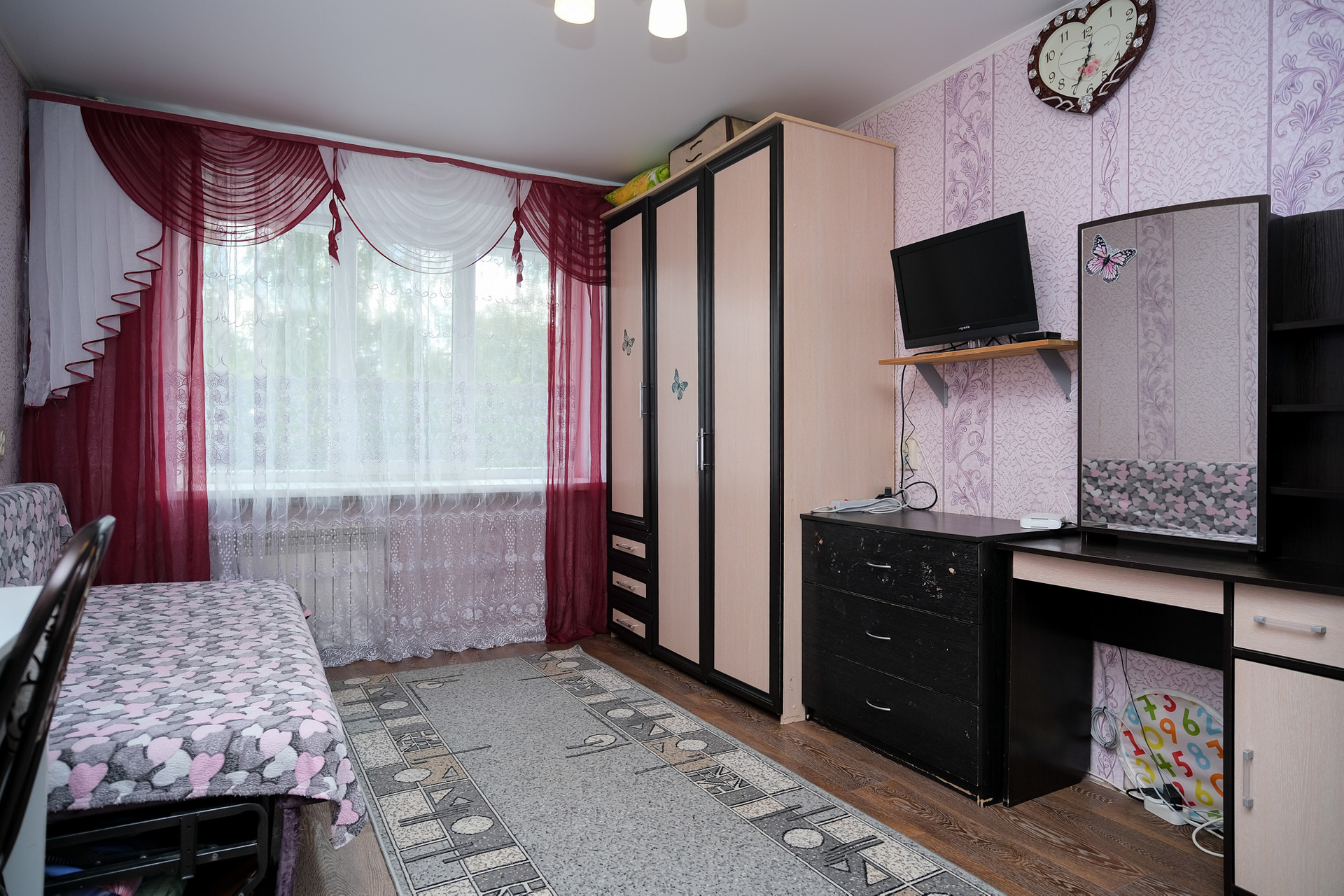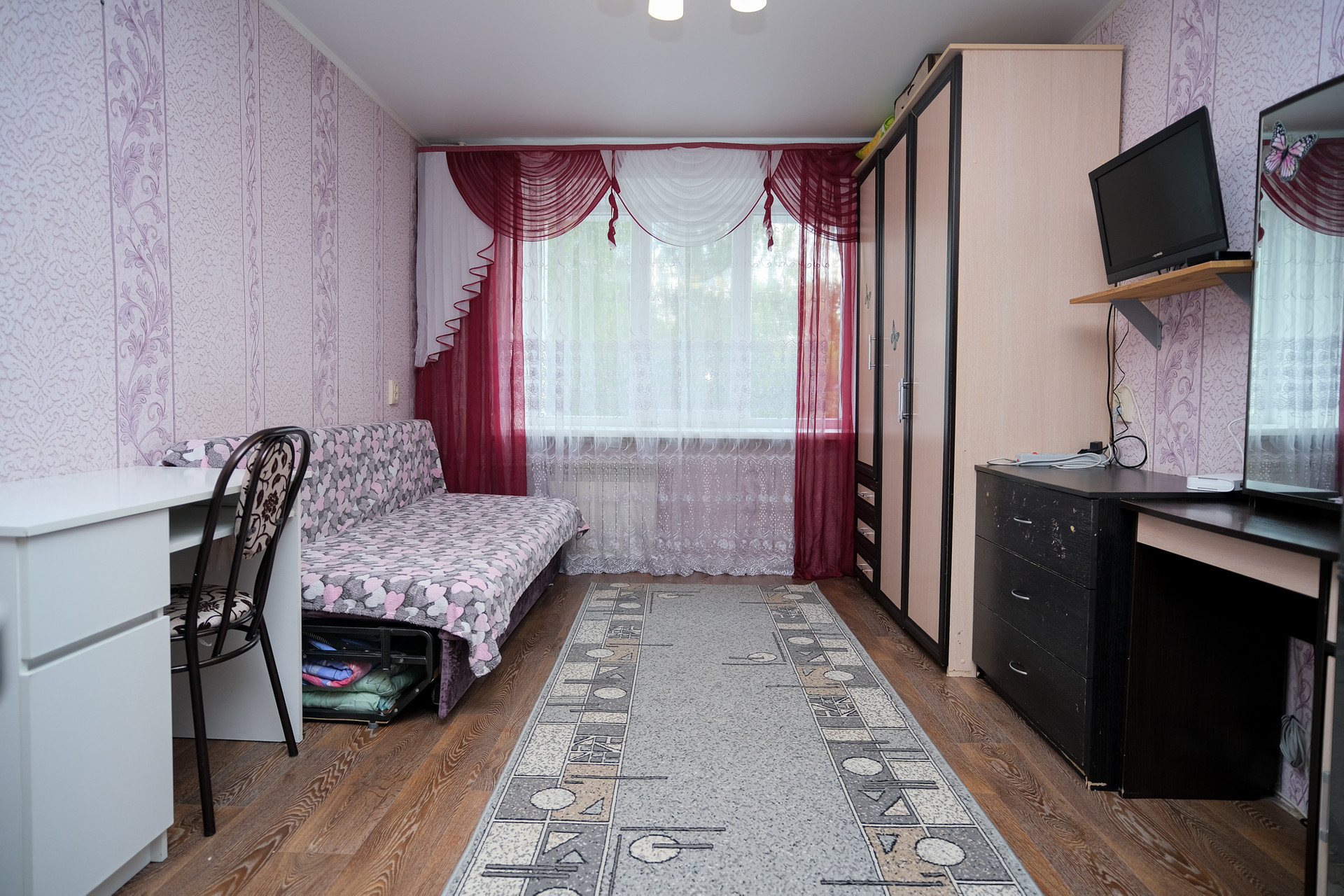 • выполнен косметический ремонт : натяжной потолок, пластиковое окно, на полу линолеум , железная входная дверь;