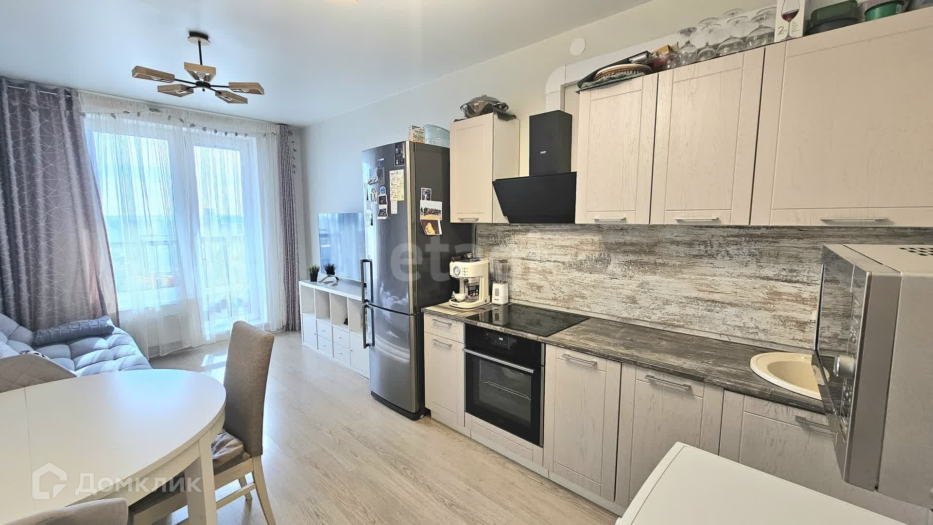 С кухни выход на просторный балкон с панорамным остеклением, открывается красивый вид на закат.